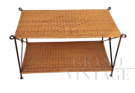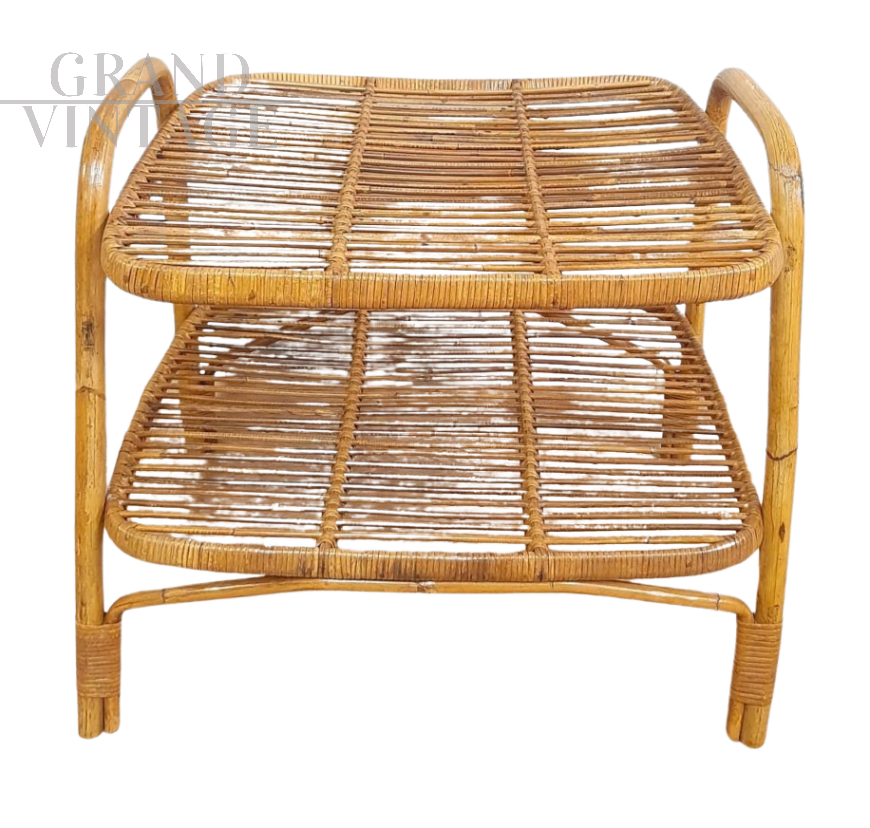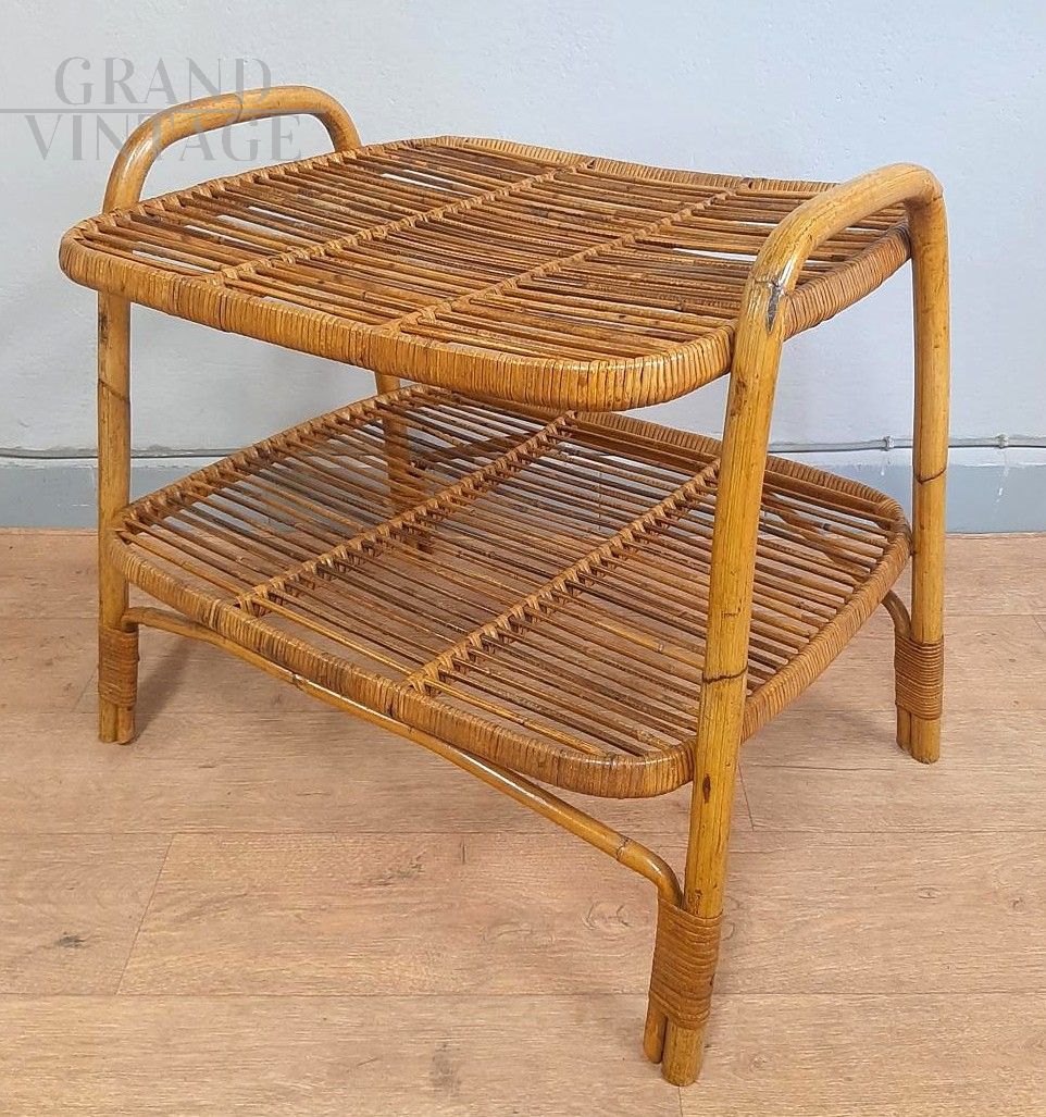 Tavolino a due piani in bamboo in stile Bonacina, anni '70