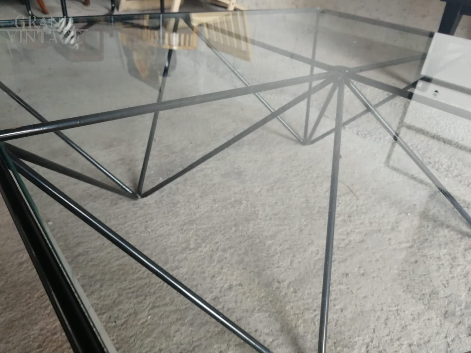 Tavolo Alanda di Paolo Piva per C&B Italia, con piano in vetro originale e struttura in ferro laccato nero.