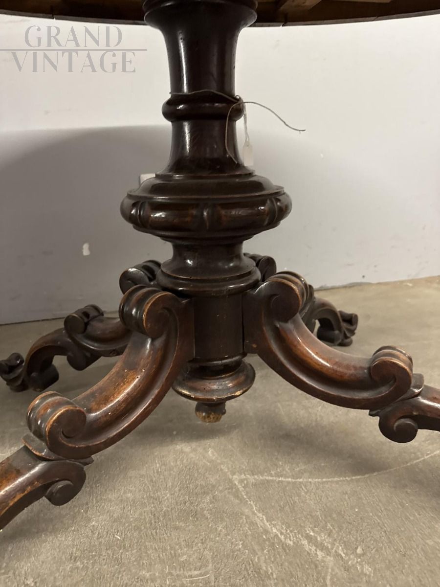 Tavolino antico ovale in noce massello di epoca Luigi Filippo