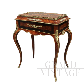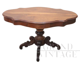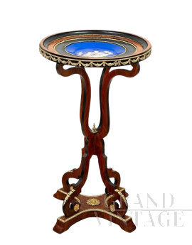 Tavolino da appoggio antico Carlo X in noce intarsiato, Italia '800
