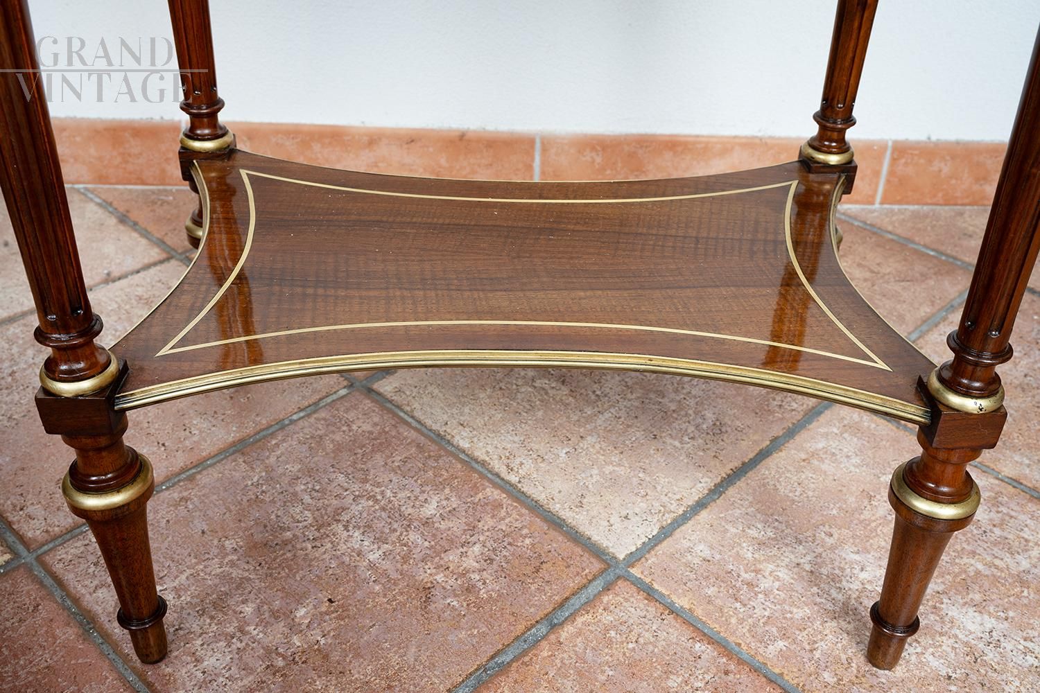 Tavolino da appoggio antico Napoleone III in mogano con piano in breccia