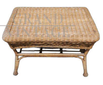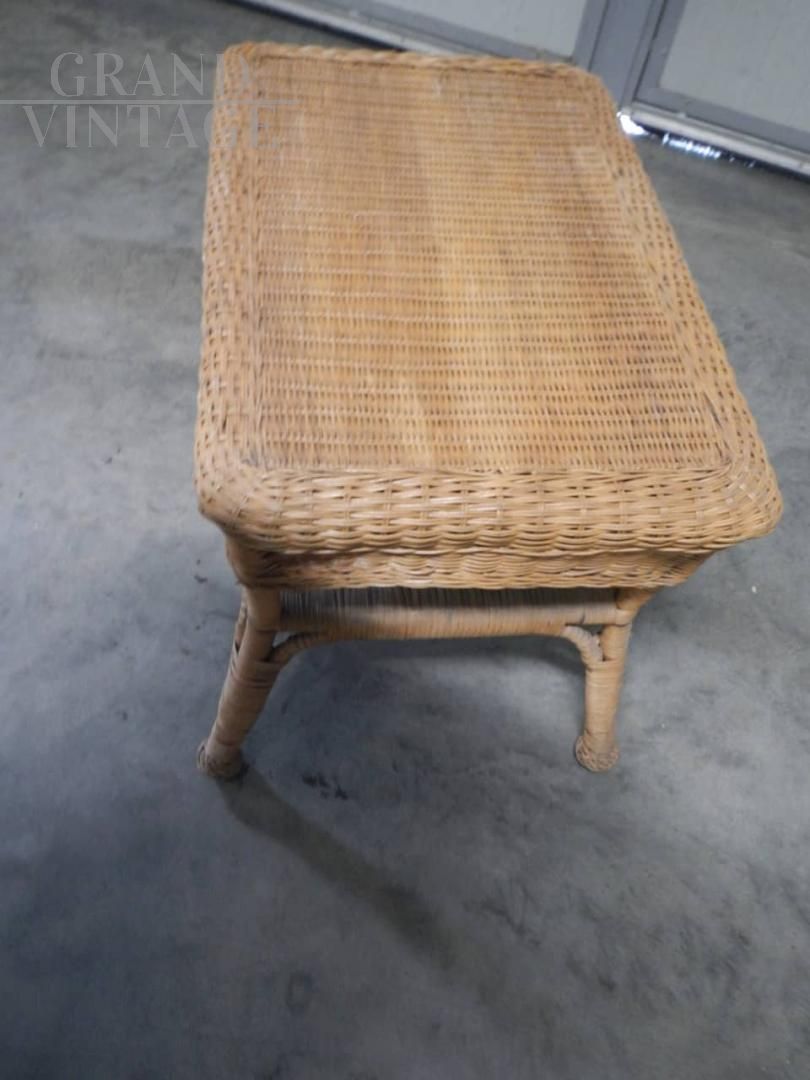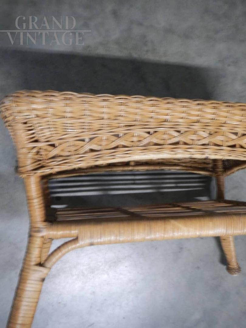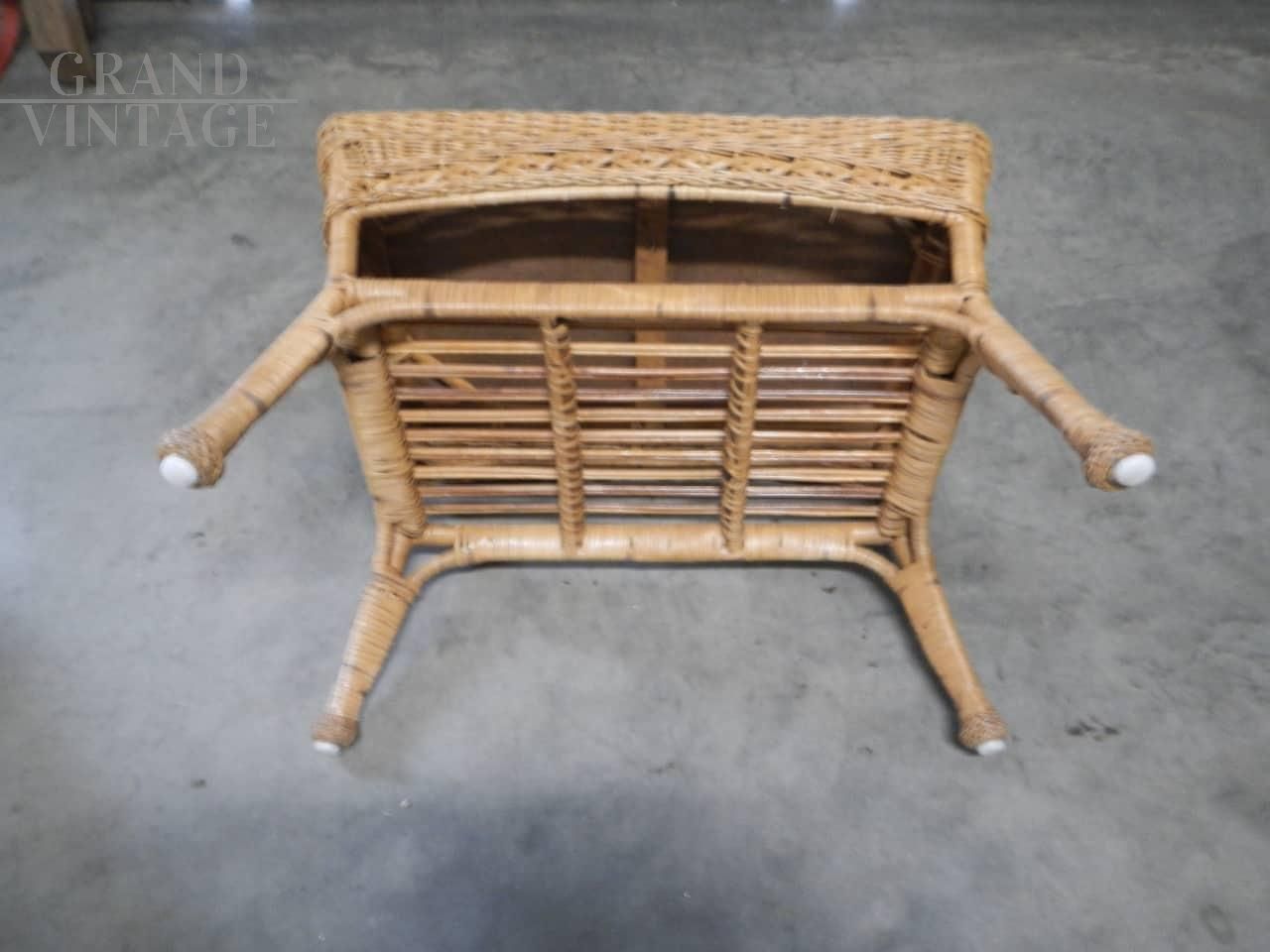 Tavolino da appoggio vintage in bamboo e rattan