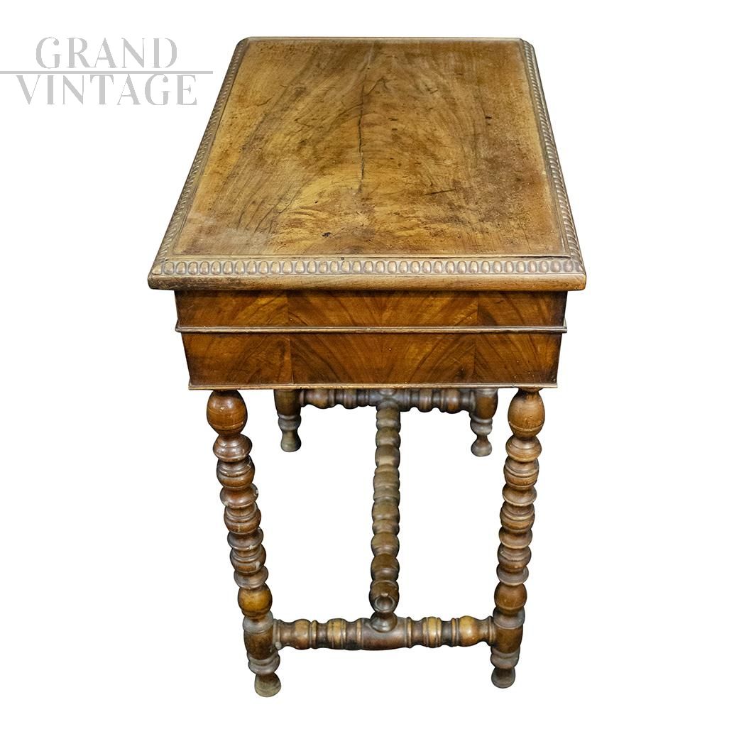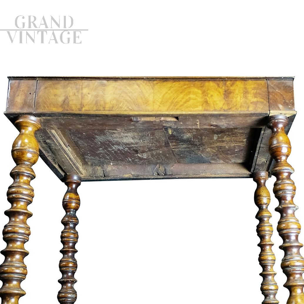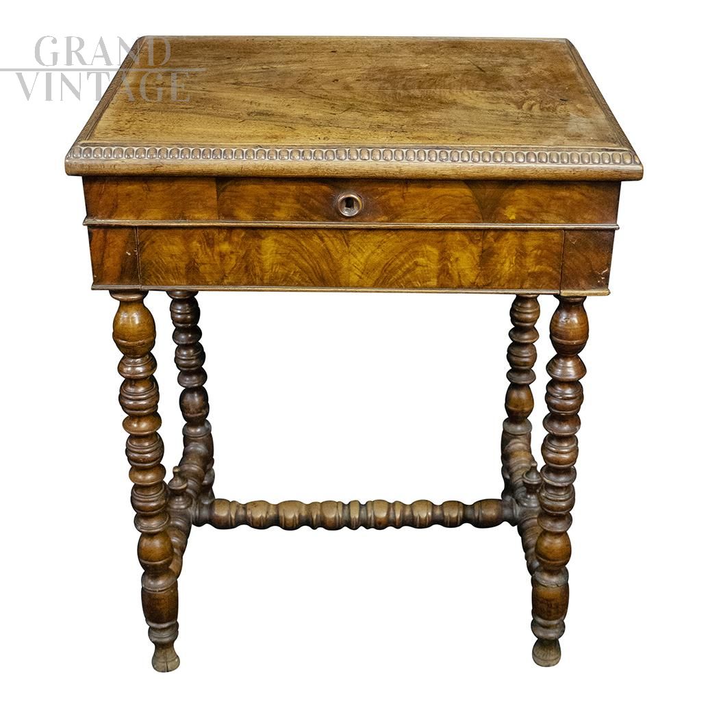 Tavolino da lavoro dell'800 intagliato con gambe tornite