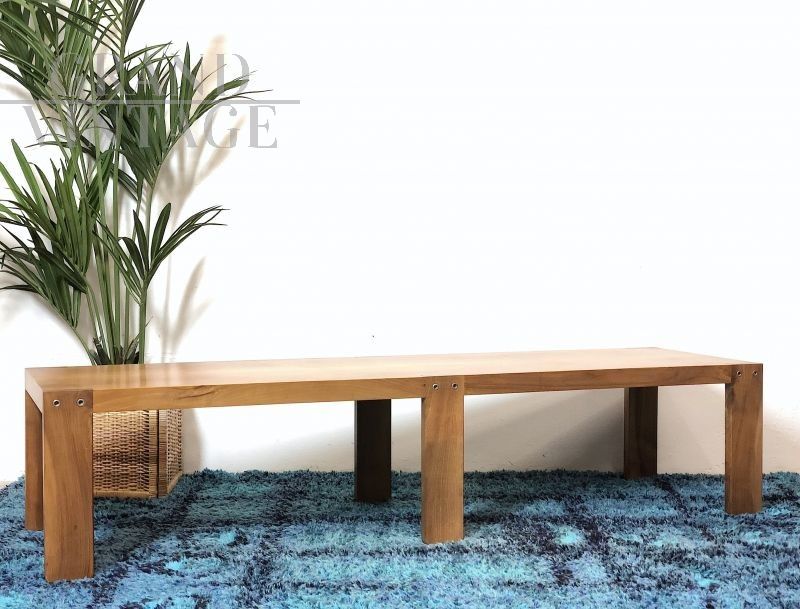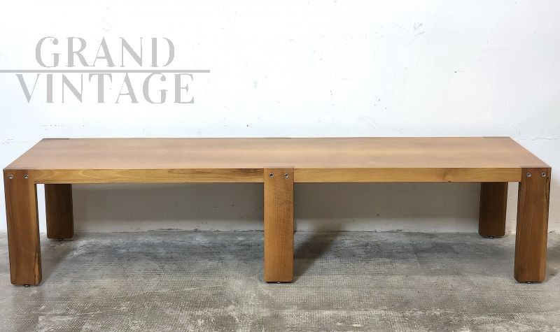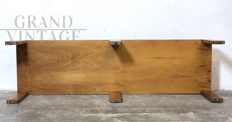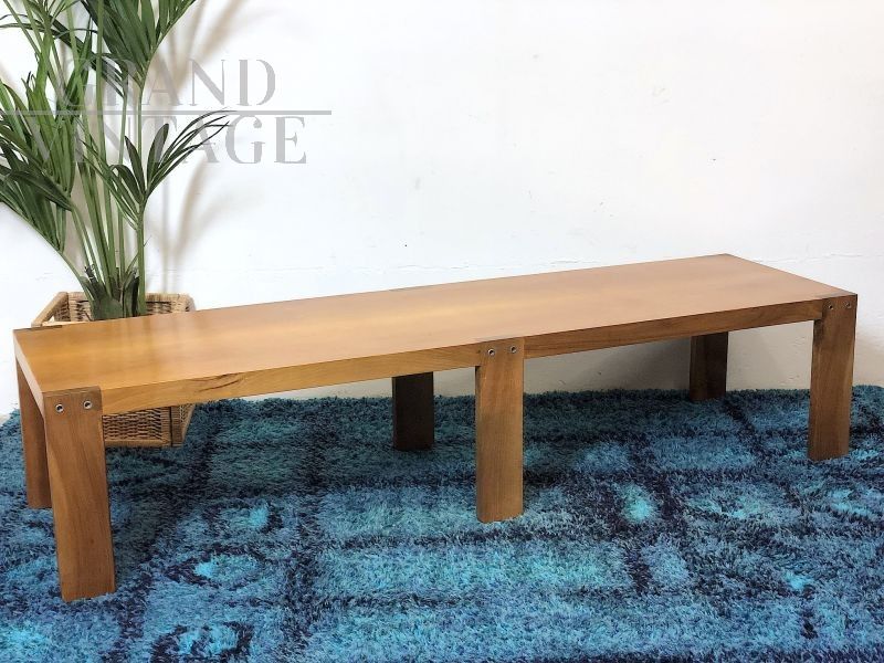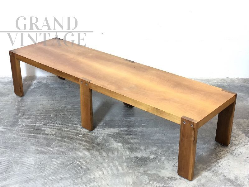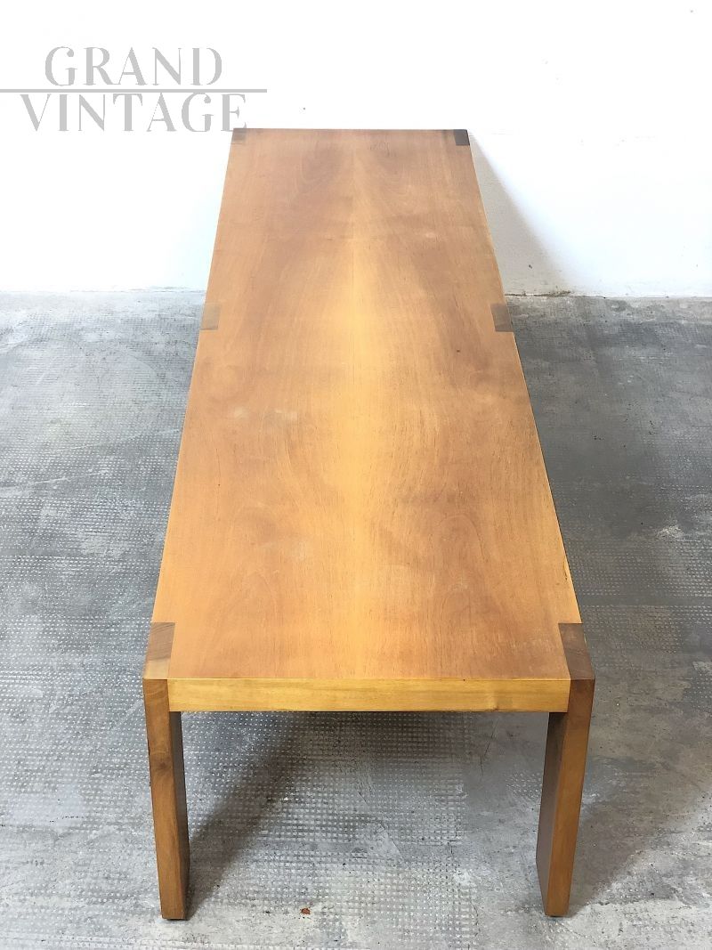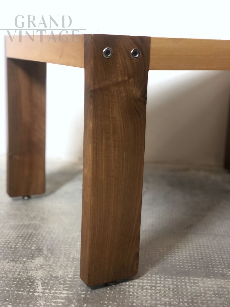 Grande tavolino da salotto doppio di manifattura Italiana degli anni '60, realizzato in legno massello con ripiano in faggio e gambe in noce, con piedini in metallo e viti a vista, capolavoro di manifattura artigianale. In condizioni perfette!