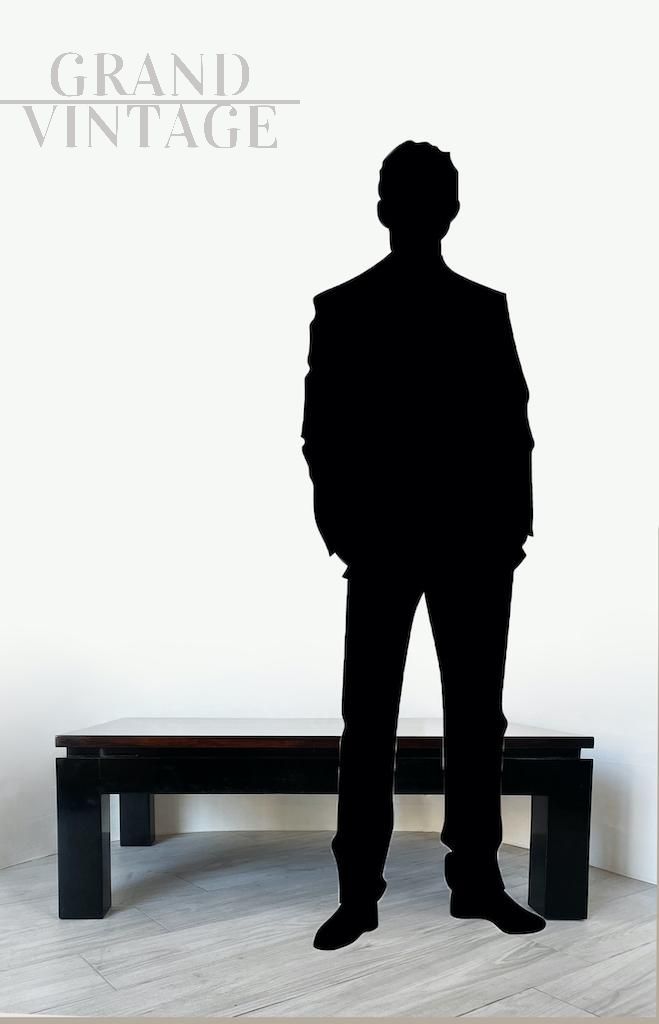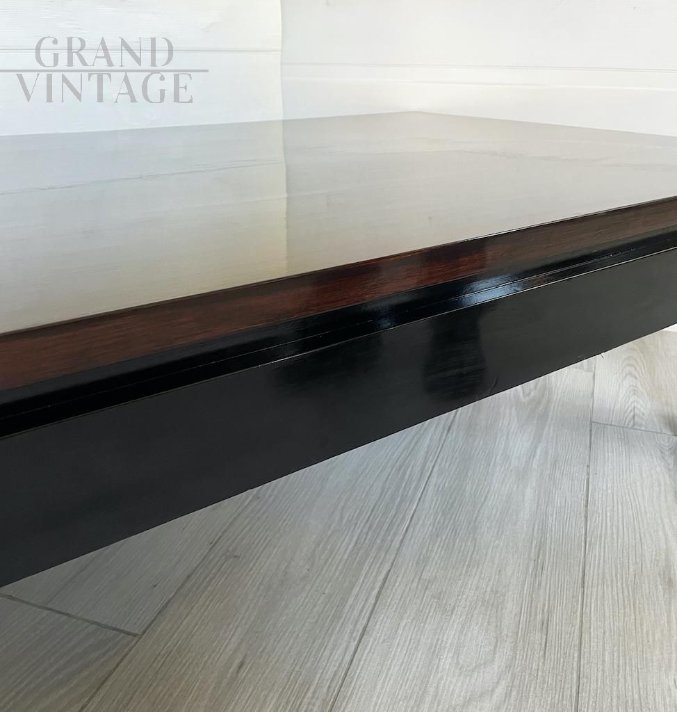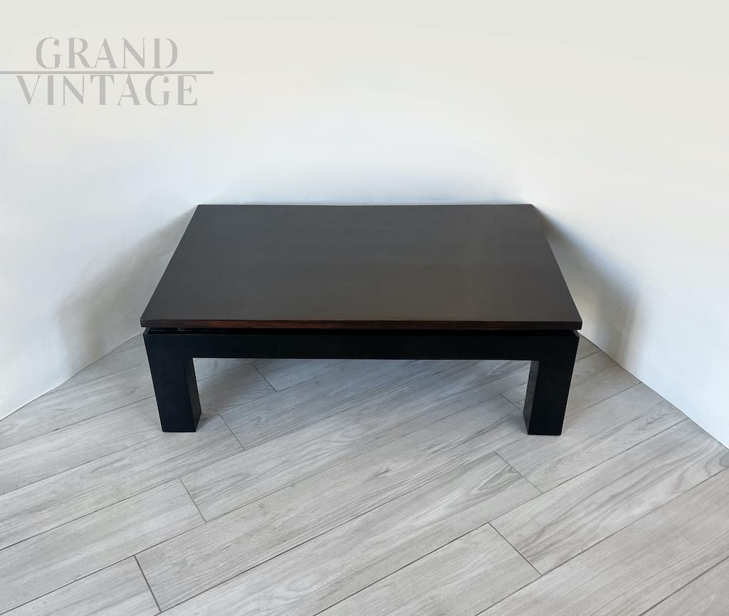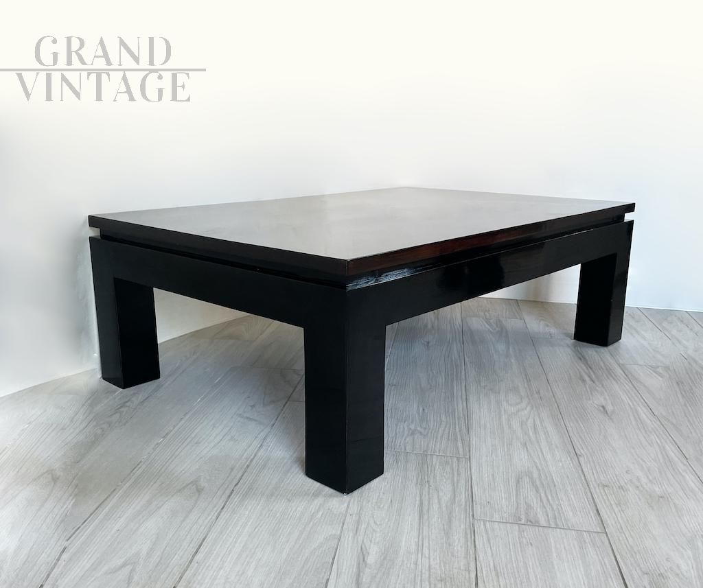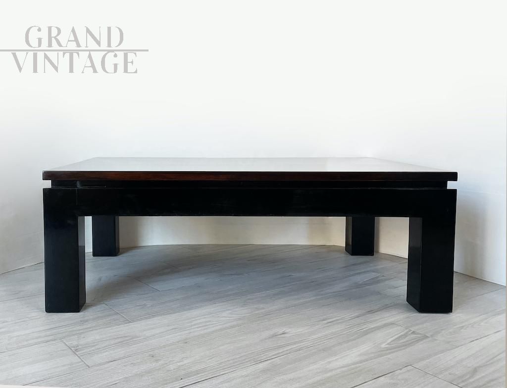 Particolare tavolino basso vintage anni '50, ideale per un soggiorno/salotto come punto d'appoggio, interamente realizzato in legno di palissandro laccato nero.