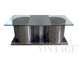 Tavolino di George Ciancimino in metallo e vetro fumé