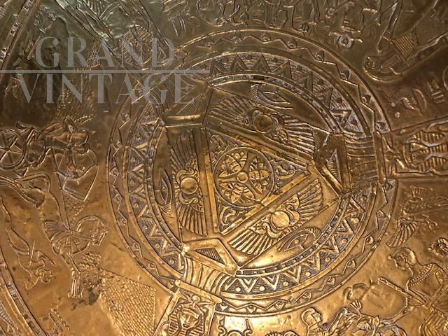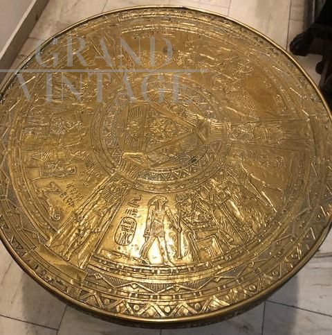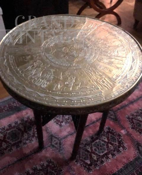 Tavolino egizio con piano in ottone lavorato