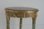 Tavolino in stile Luigi Filippo laccato verde e oro con piano rotondo in marmo
