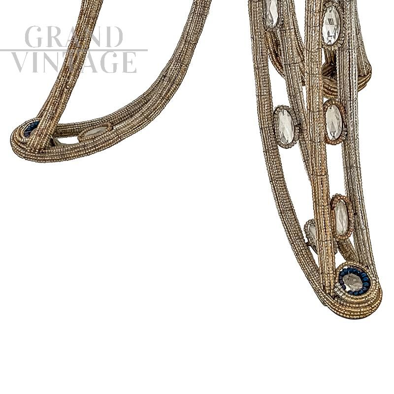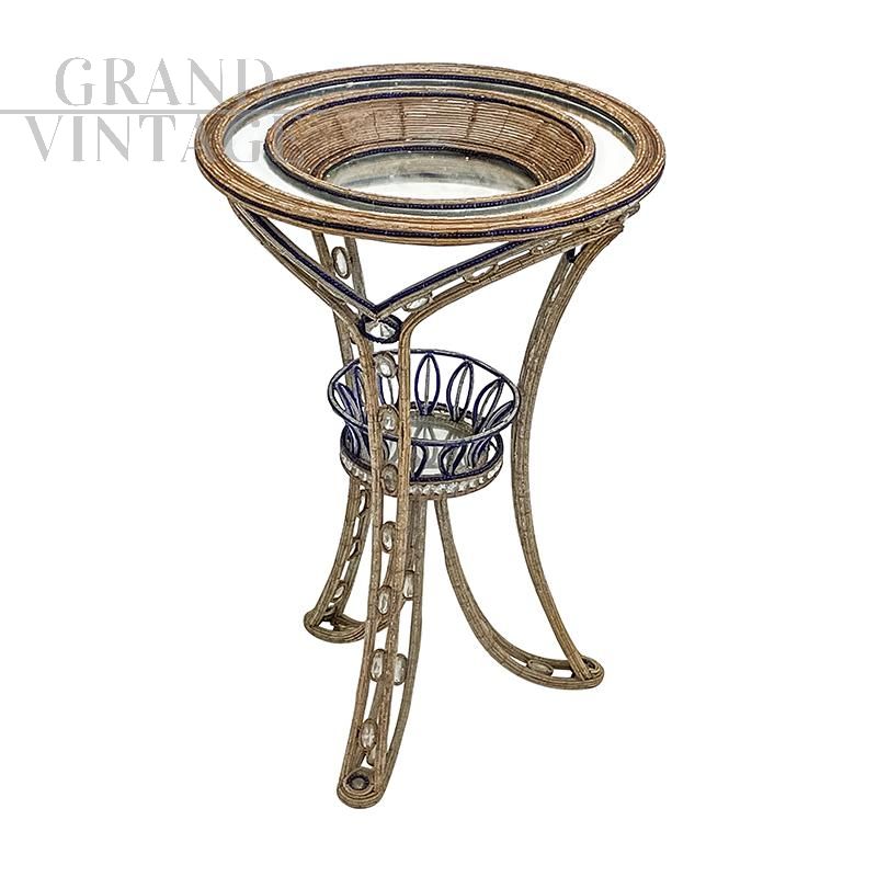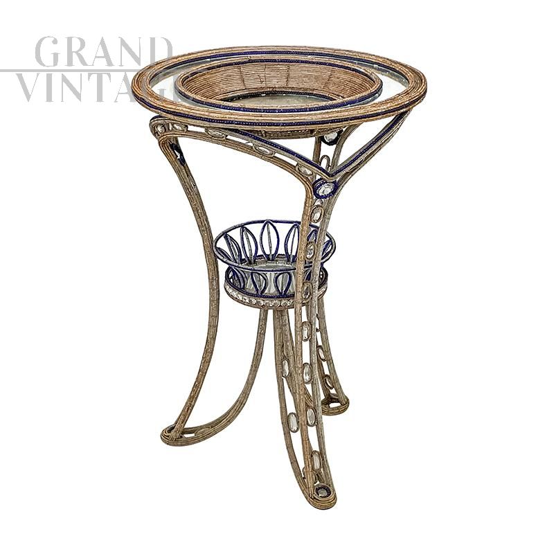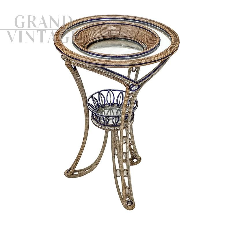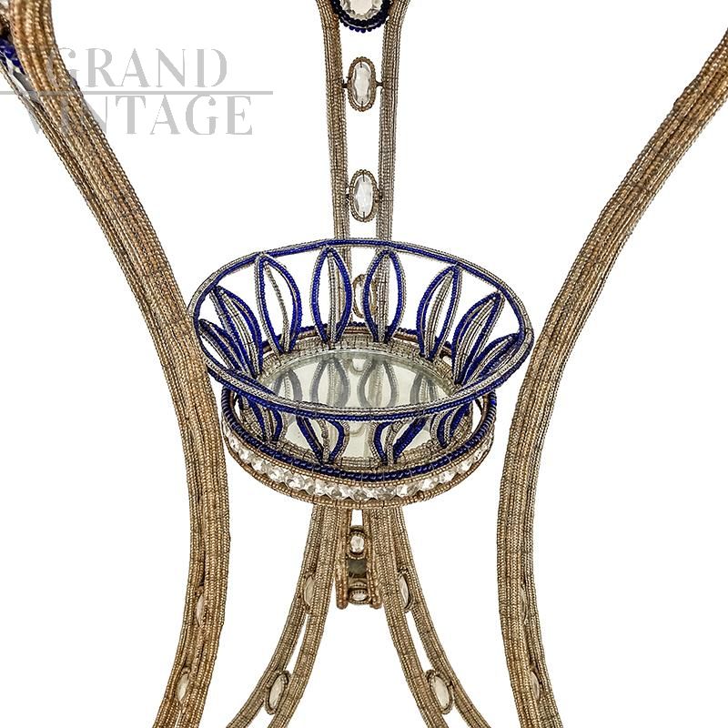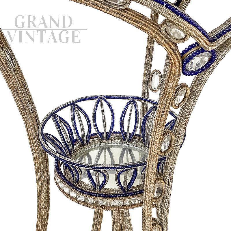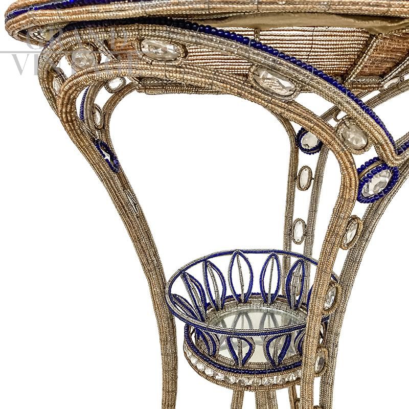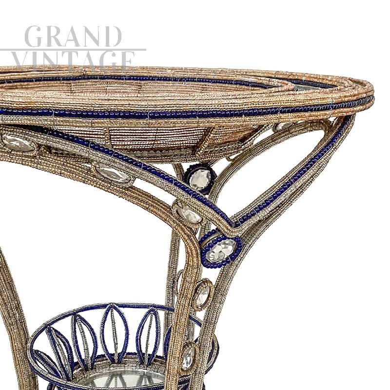 Tavolino rivestito con perline in vetro di Murano con dettagli a specchio, fine '800 - V-0115