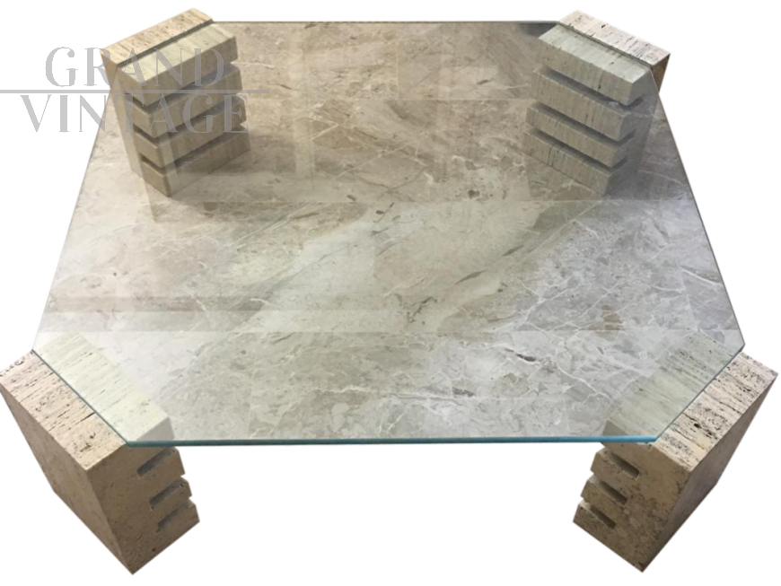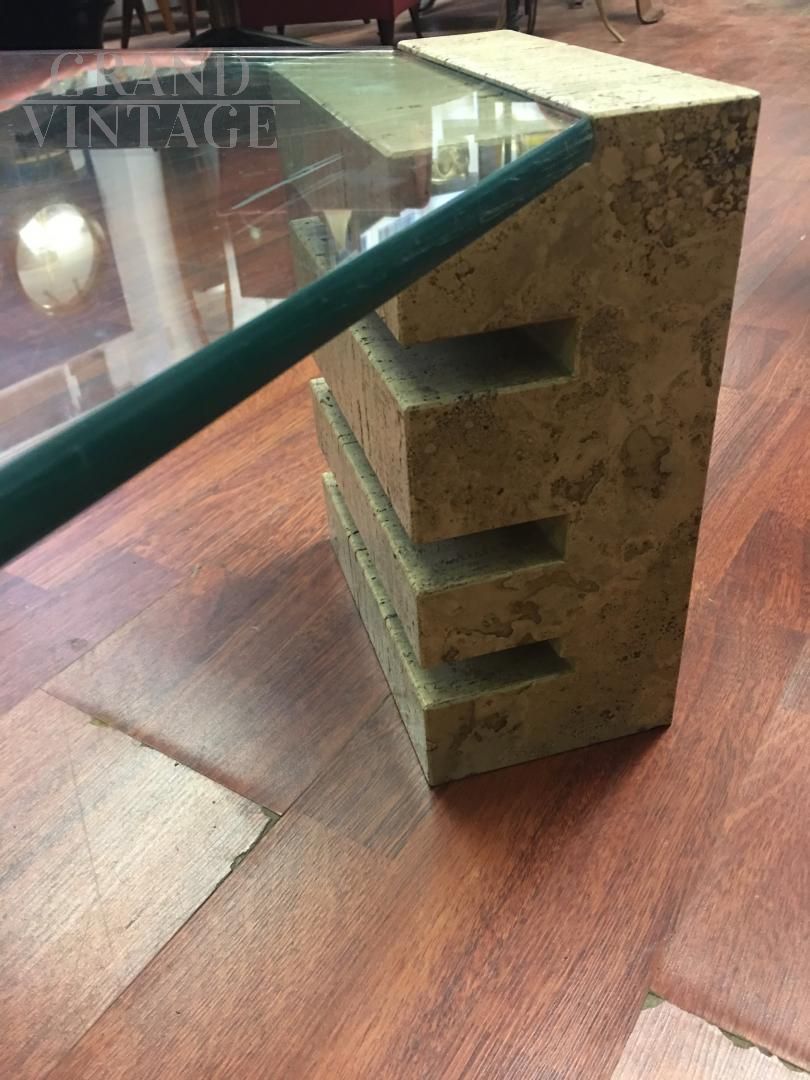 Tavolino in Travertino e Vetro - Anni '70 - Silvana Bertoldi per Citterio Meda