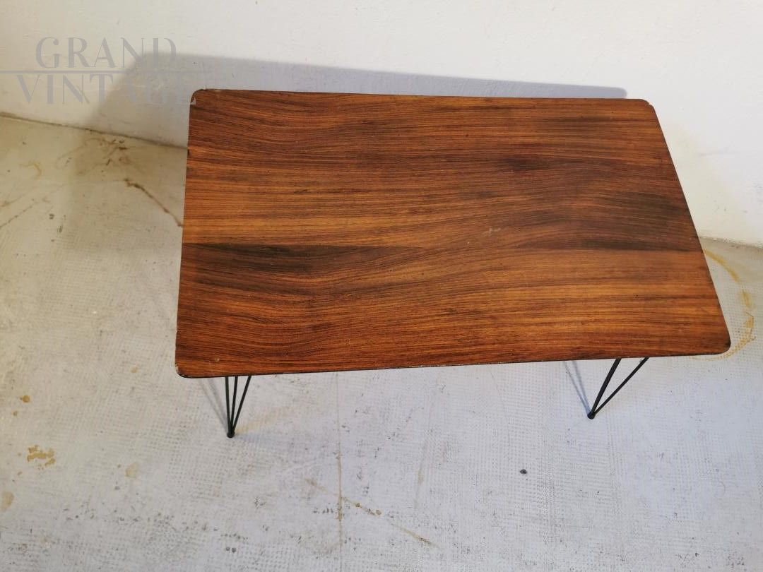 Tavolino vintage prodotto da String con piano in legno e gambe molto fini in metallo, anni '60.