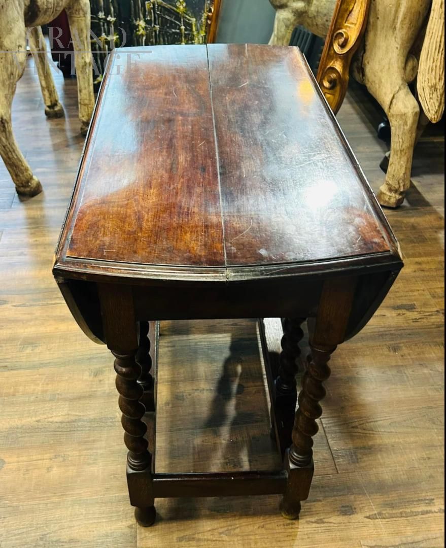 Tavolo antico richiudibile a bandelle con splendide gambe tornite, periodo 1910 - 1920.