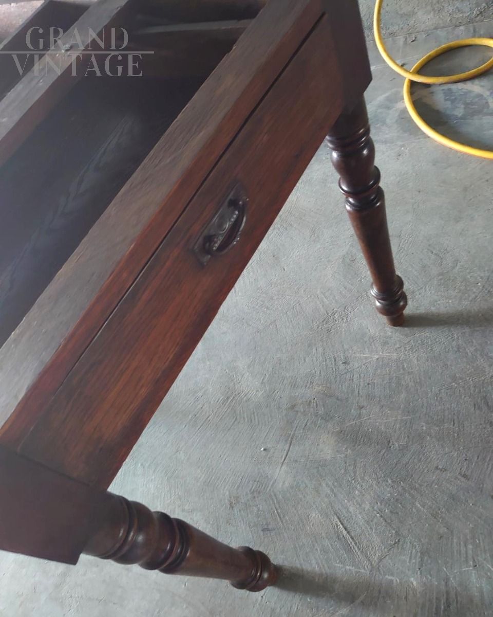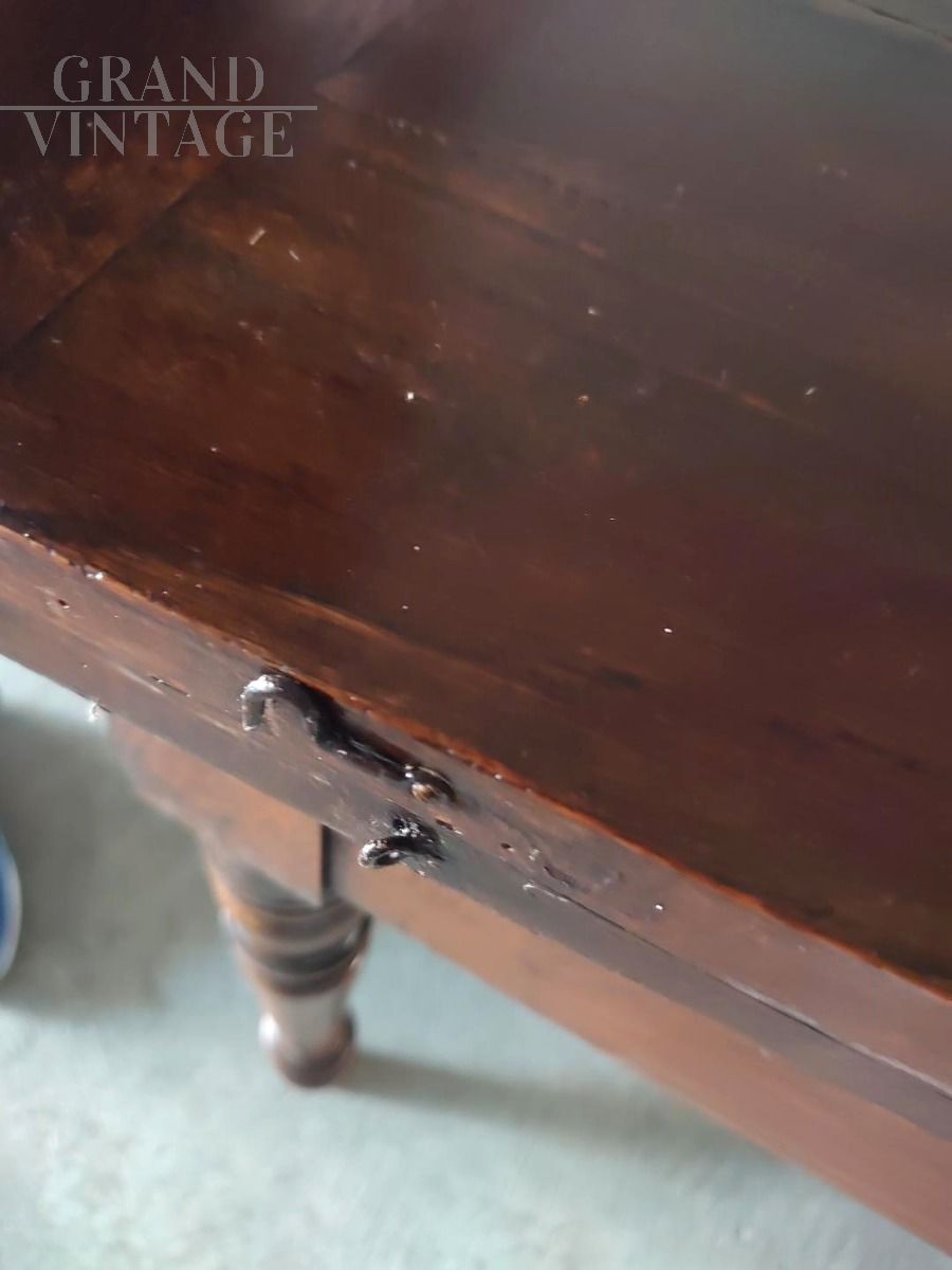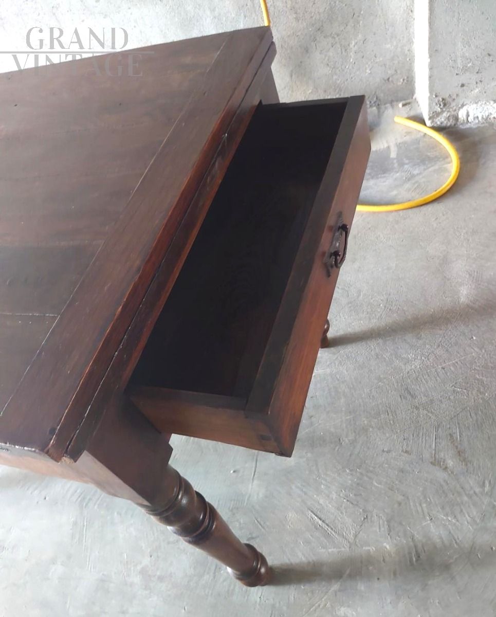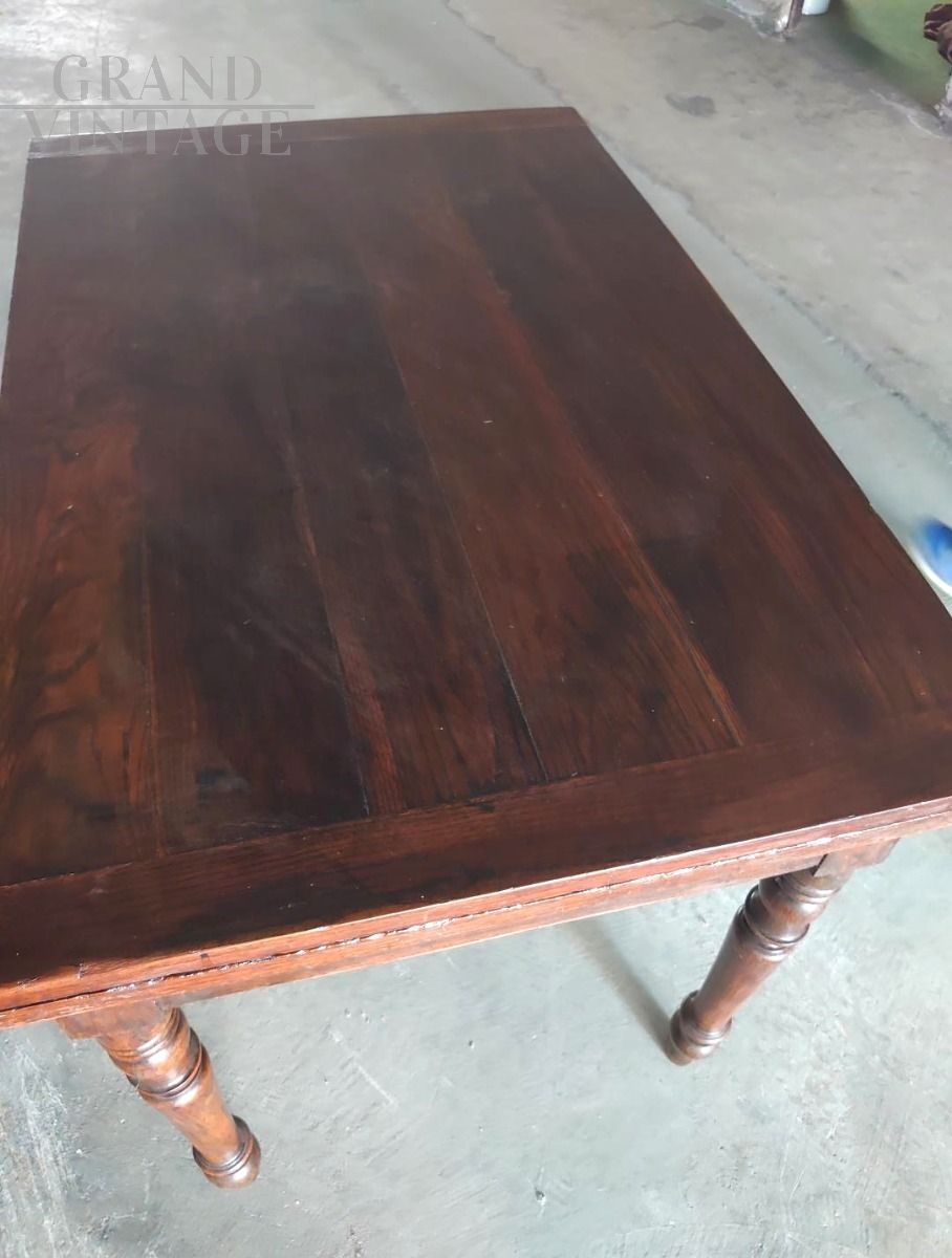 Tavolo antico allungabile a libro della prima metà dell'ottocento in noce, con gambe tornite, restaurato, in perfette condizioni.