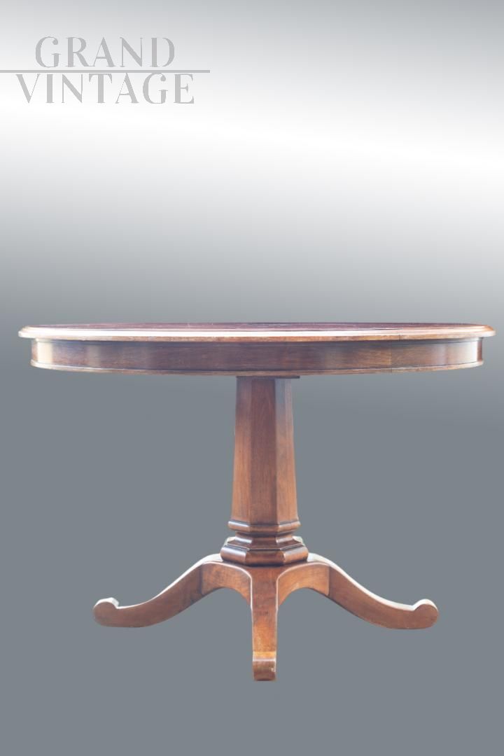 Tavolo in mogano della nota azienda Italiana L'origine . Il tavolo è sorretto da un grande balaustro centrale in stile Carlo X, dotato di 4 gambe mosse. Lastronato in mogano, Firmato sotto L’ORIGINE Restaurato completamente L'Origine è un'azienda italiana attiva nel settore dell'interior design che produce arredi di alta qualità interpretando il gusto internazionale.