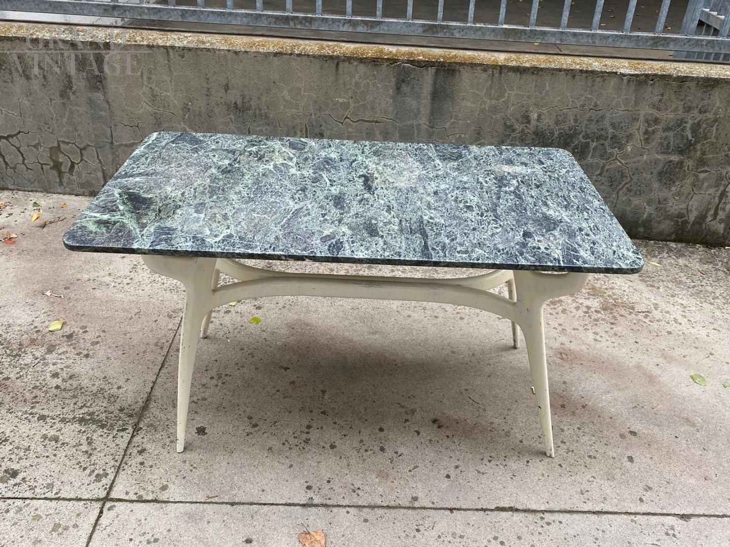 Tavolo anni '50 in legno laccato con piano in marmo verde Alpi
