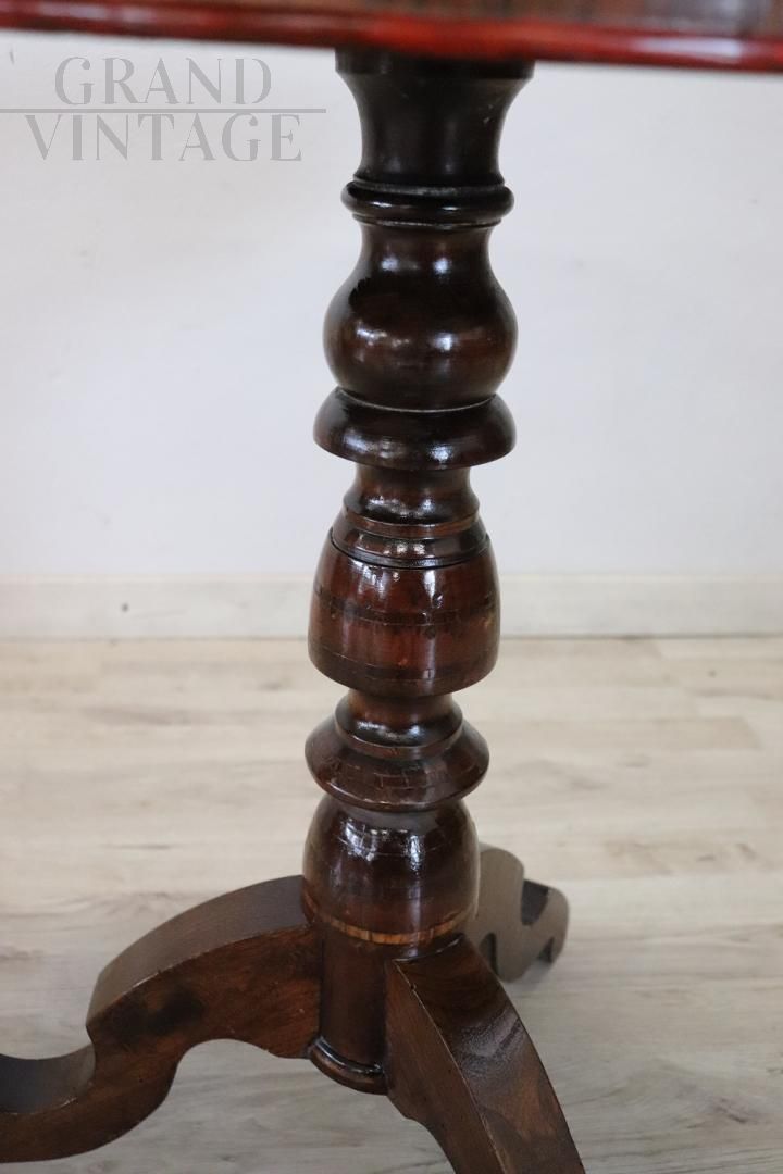 Tavolo antico da salotto finemente intarsiato, metà ‘800