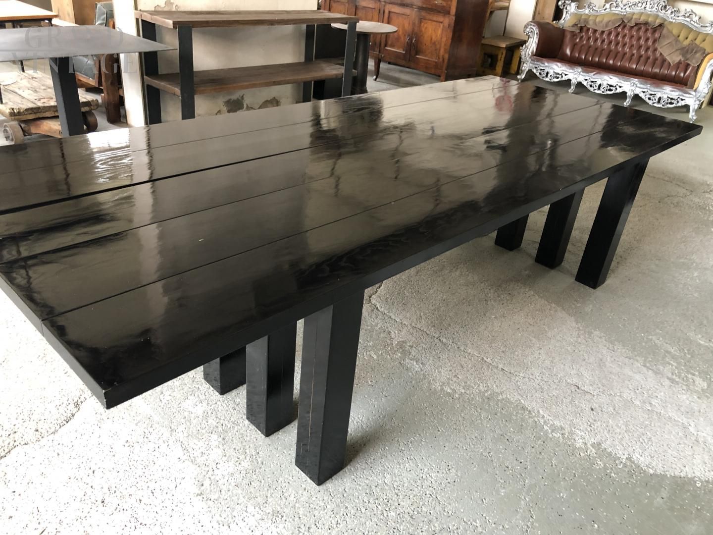 Tavolo da riunione anni 60/70, in legno di rovere. Le gambe e il piano sono formati da doghe lastronate in rovere di colore nero.