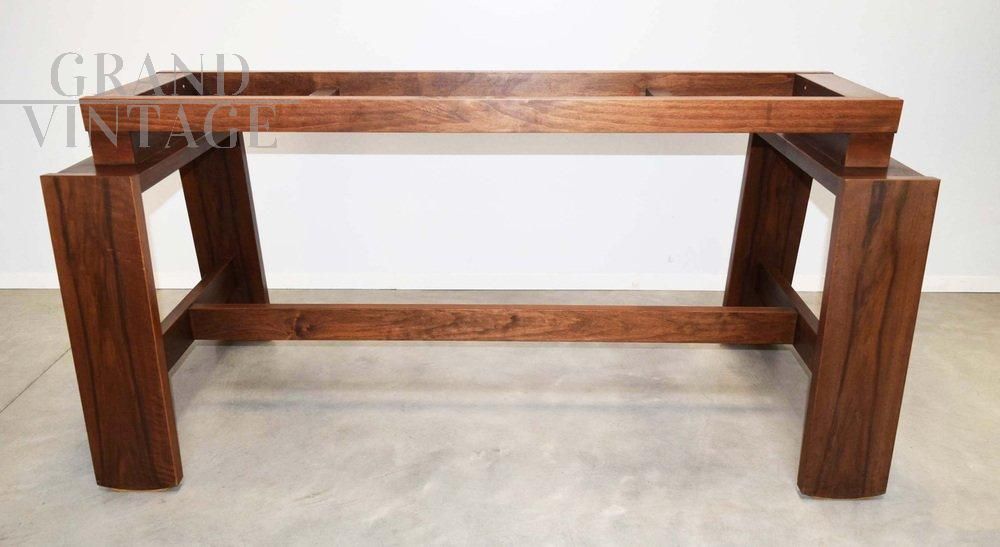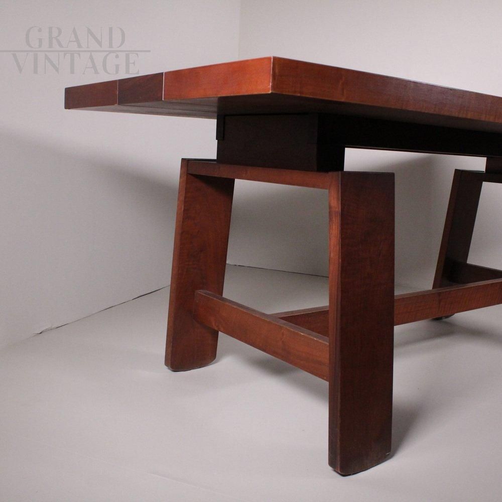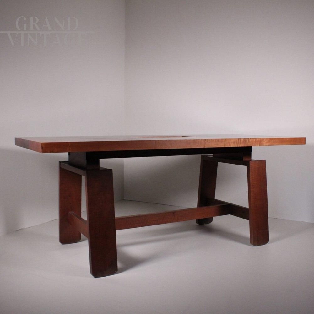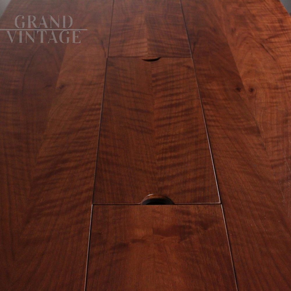 Tavolo da pranzo design di Silvio Coppola per Bernini di forma rettangolare, modello 611 disegnato nel 1964, con struttura e piano in legno di noce impiallacciato, scomparto mobile ed elementi contenitori in ceramica smaltata. Ottime condizioni.