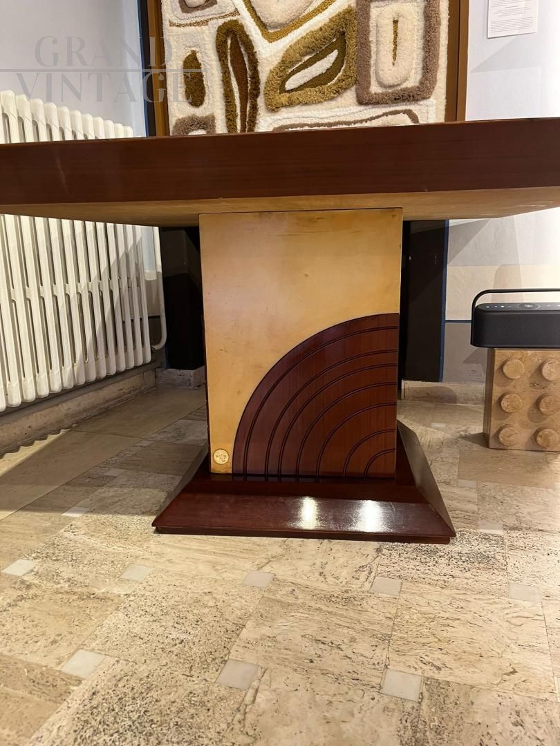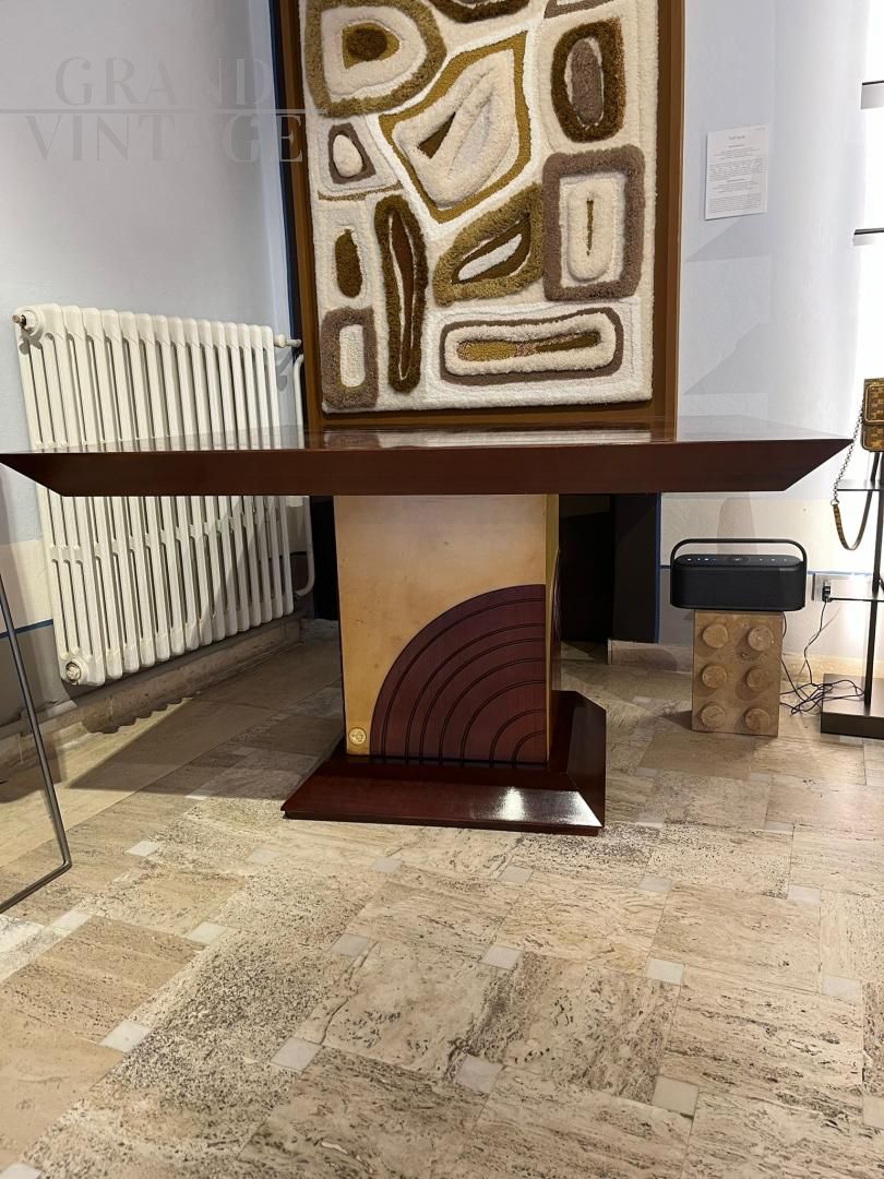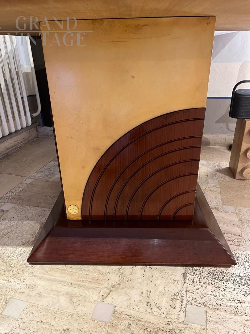 Tavolo design di Luciano Frigerio in pergamena e mogano, anni '60