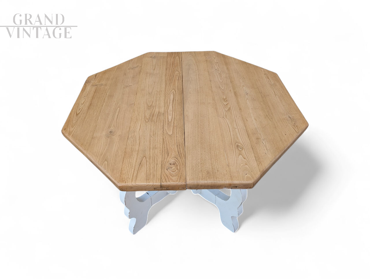 Tavolo ottagonale in legno di castagno con base sagomata, anni '70
