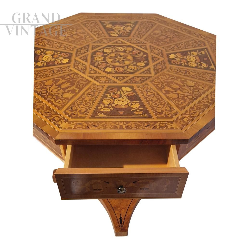 Tavolo ottagonale intarsiato in stile antico