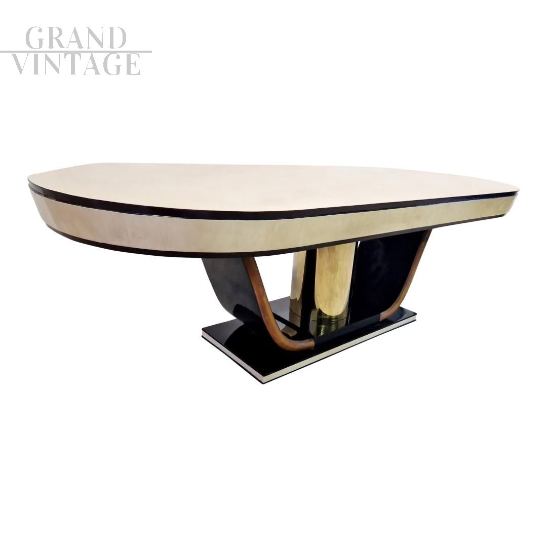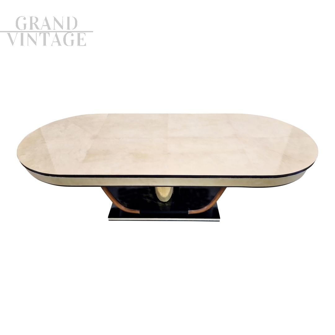 Tavolo ovale in pergamena naturale in stile Art Déco