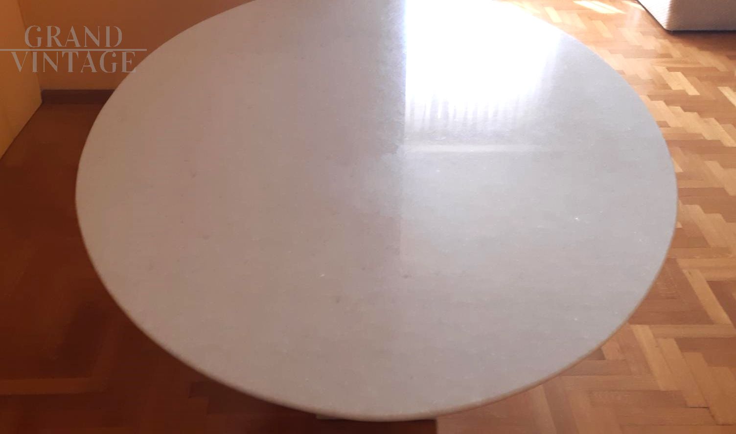 Questo tavolo fa parte della produzione che utilizzava il marmo greco di Naxos, successivamente è stato utilizzato il marmo di Carrara che presenta delle venature nere.