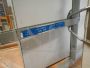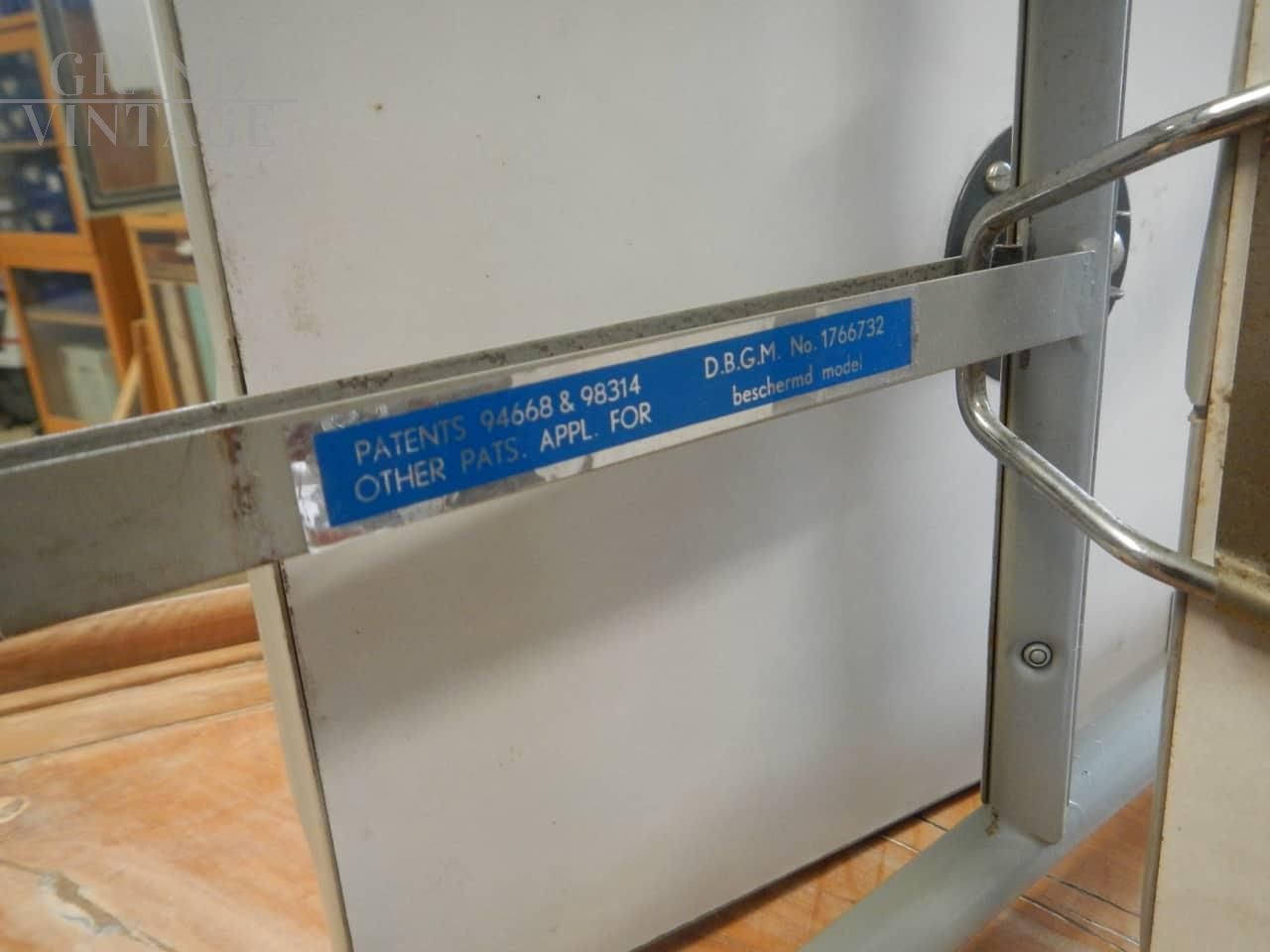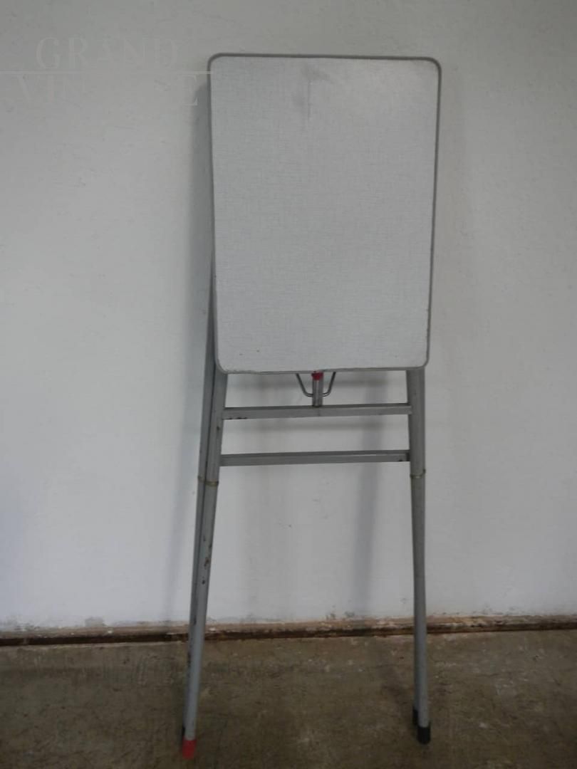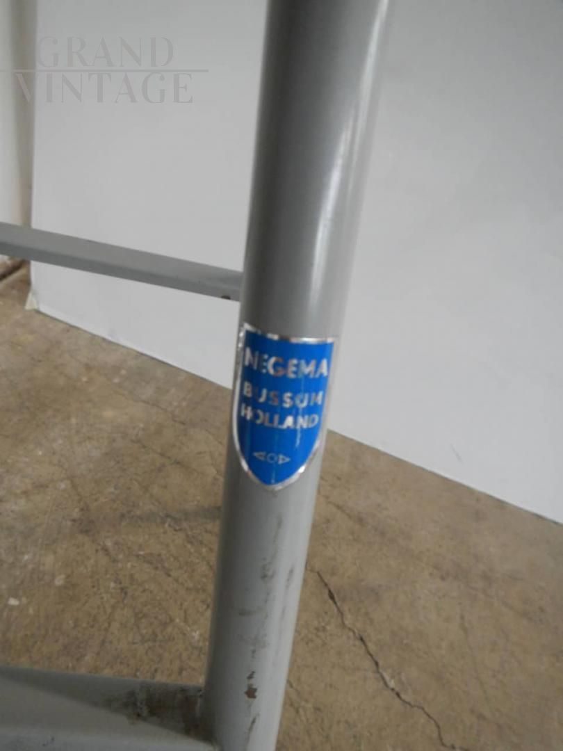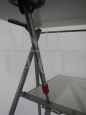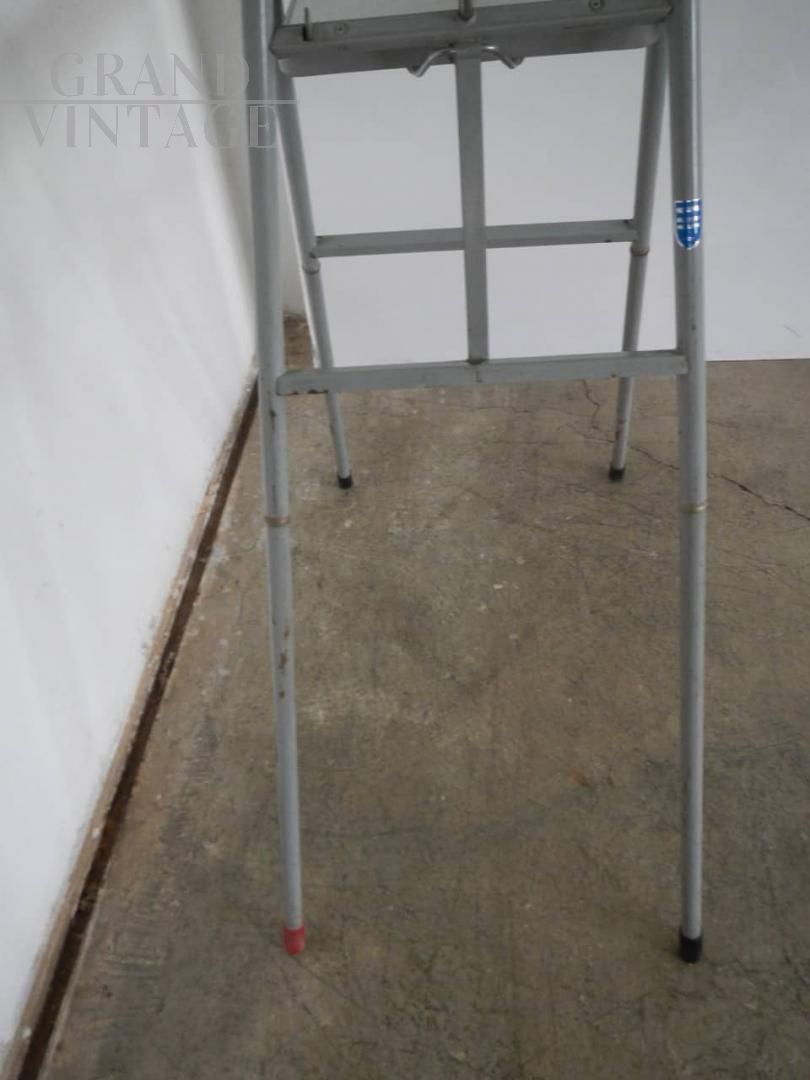 Trespolo per proiettore anni '70 della ditta olandese Negema Bussum Holland, ripieghevole con piani in formica e struttura in metallo.