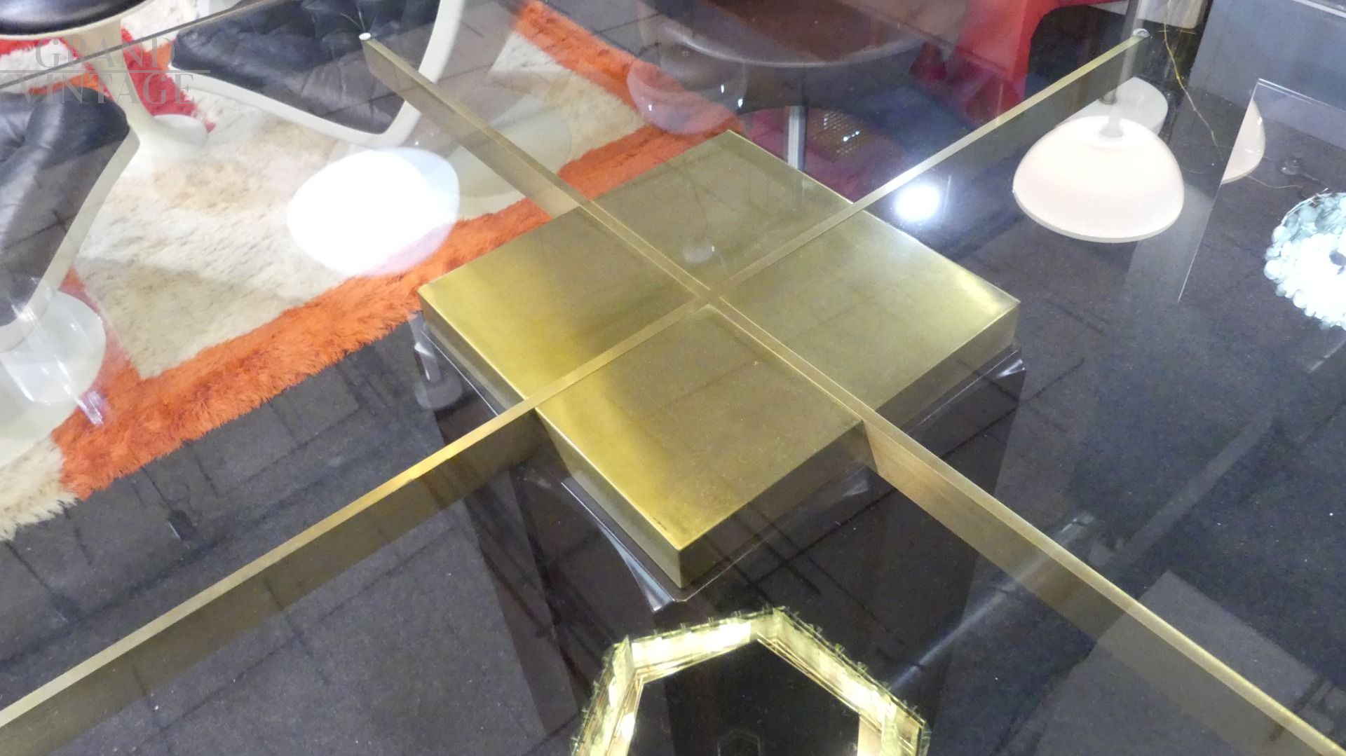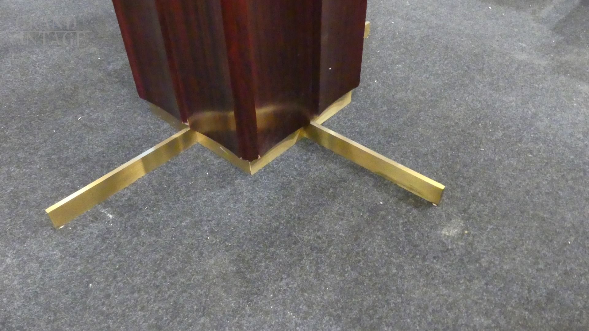 Tavolo Tartaro di Frigerio e Desio, del 1966, con piano quadrato in vetro molato e gamba centrale in legno padduk e ottone, in ottime condizioni, il piano è perfetto!