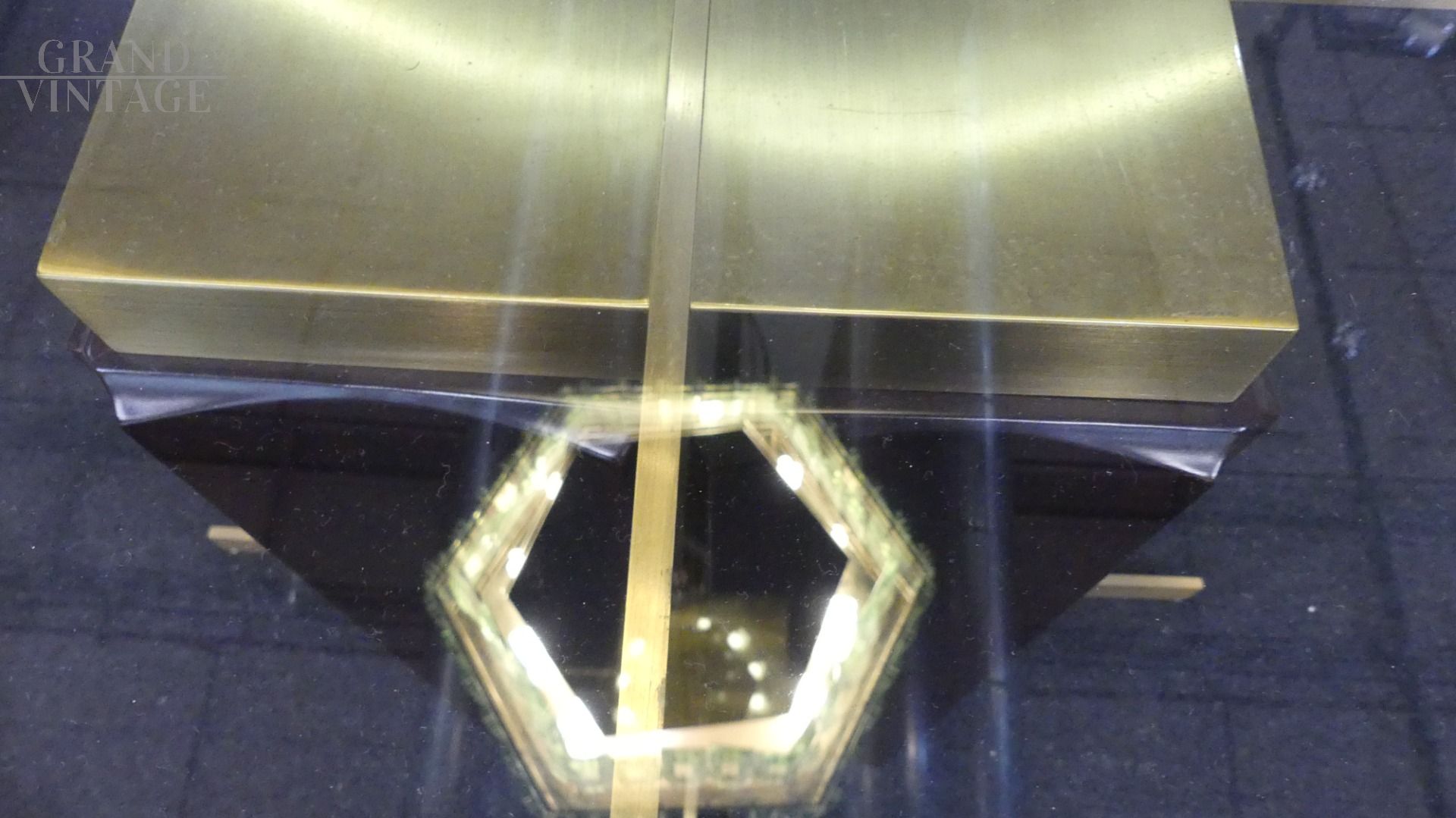 Tavolo Tartaro di Frigerio e Desio in vetro, legno e ottone