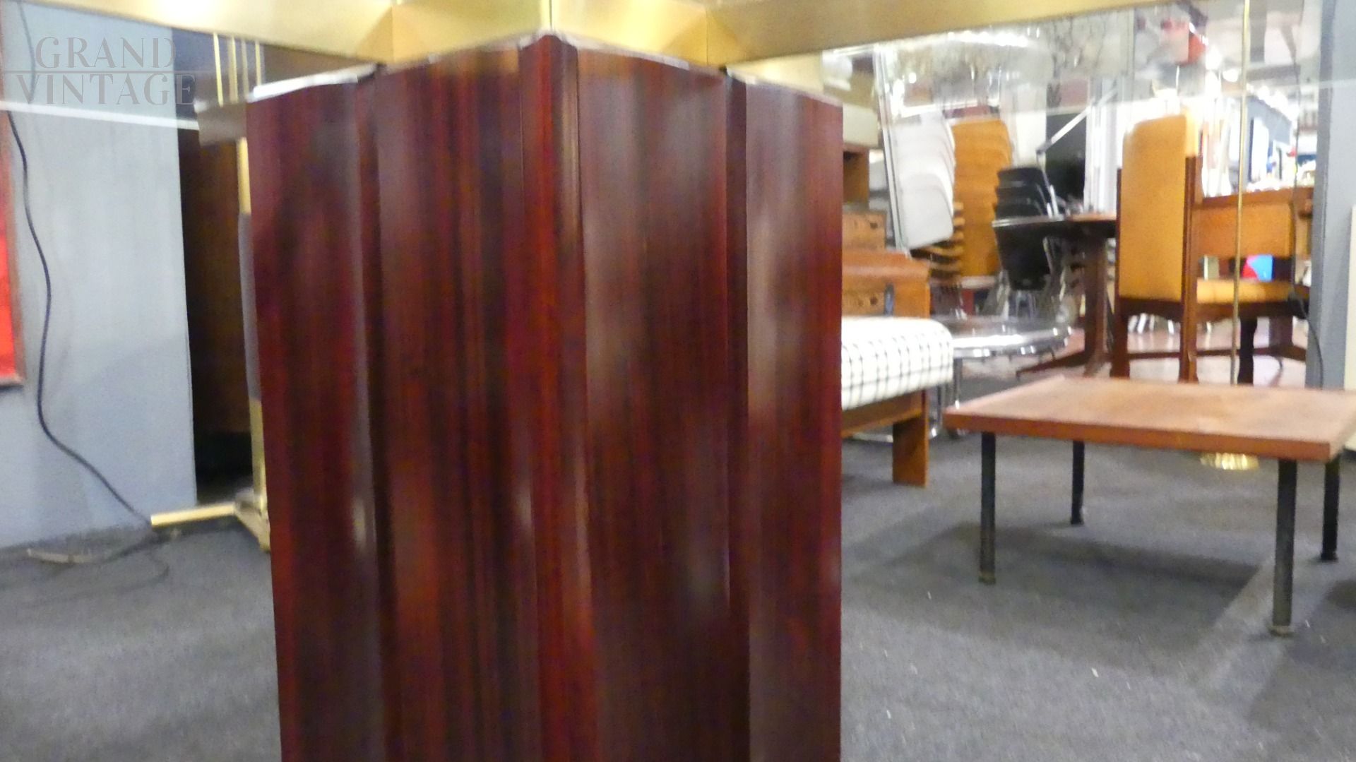 Tavolo Tartaro di Frigerio e Desio in vetro, legno padduk e ottone