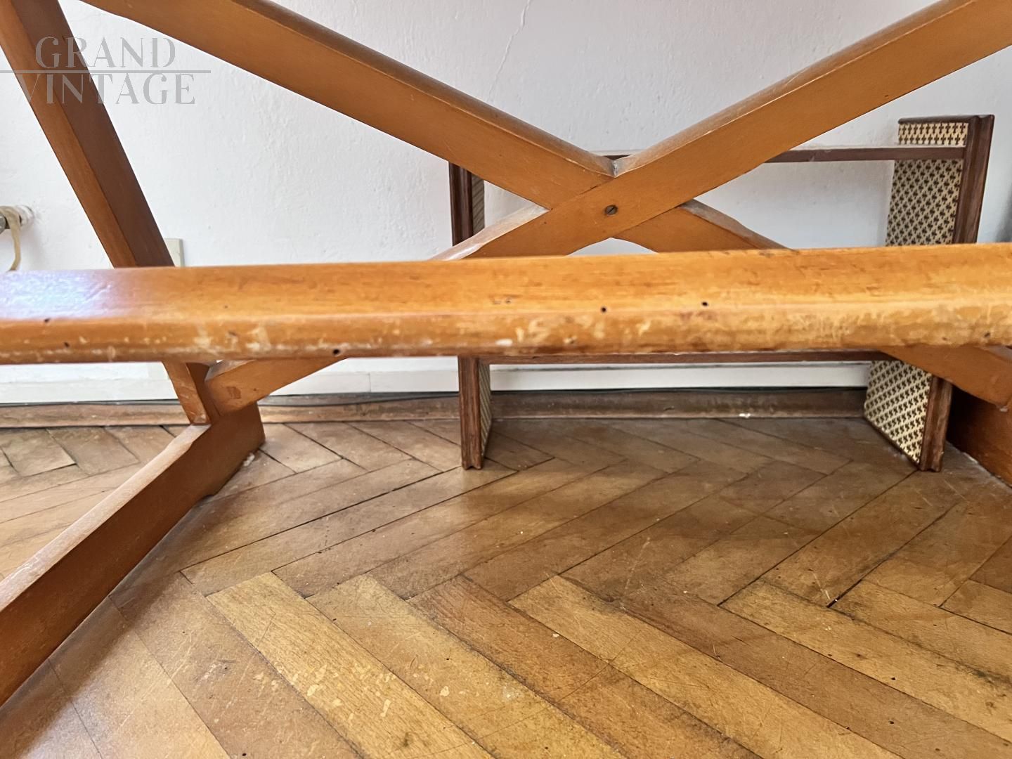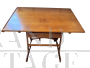 Il tecnigrafo è in buono stato, completo di portamatite sul lato, manca però il regolo. La superficie del tavolo sembra sia stata, in epoca successiva, trattata con una verniciatura. Il meccanismo di inclinazione del piano con la rotella non è stato testato, potrebbe non funzionare. La struttura presenta qualche segno del tempo, in particolare dei fori di tarlo sulla base e dei graffi, come da foto. Il piano è sano e non presenta segni di tarlo. Il tecnigrafo è stato trattato con prodotto antitarlo.