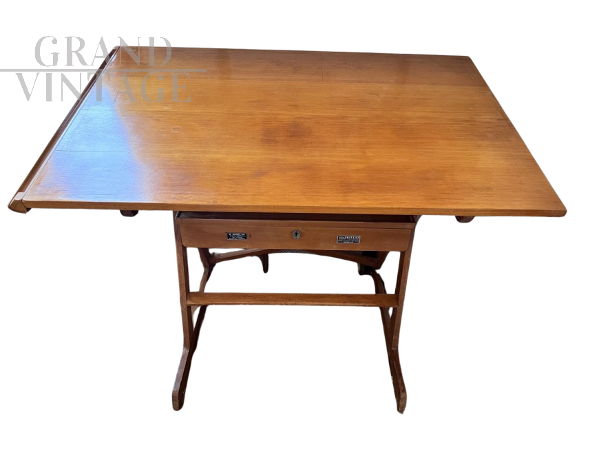 Bellissimo tecnigrafo vintage in legno degli anni '50/'60, prodotto dalla ditta Angelini di Venezia.