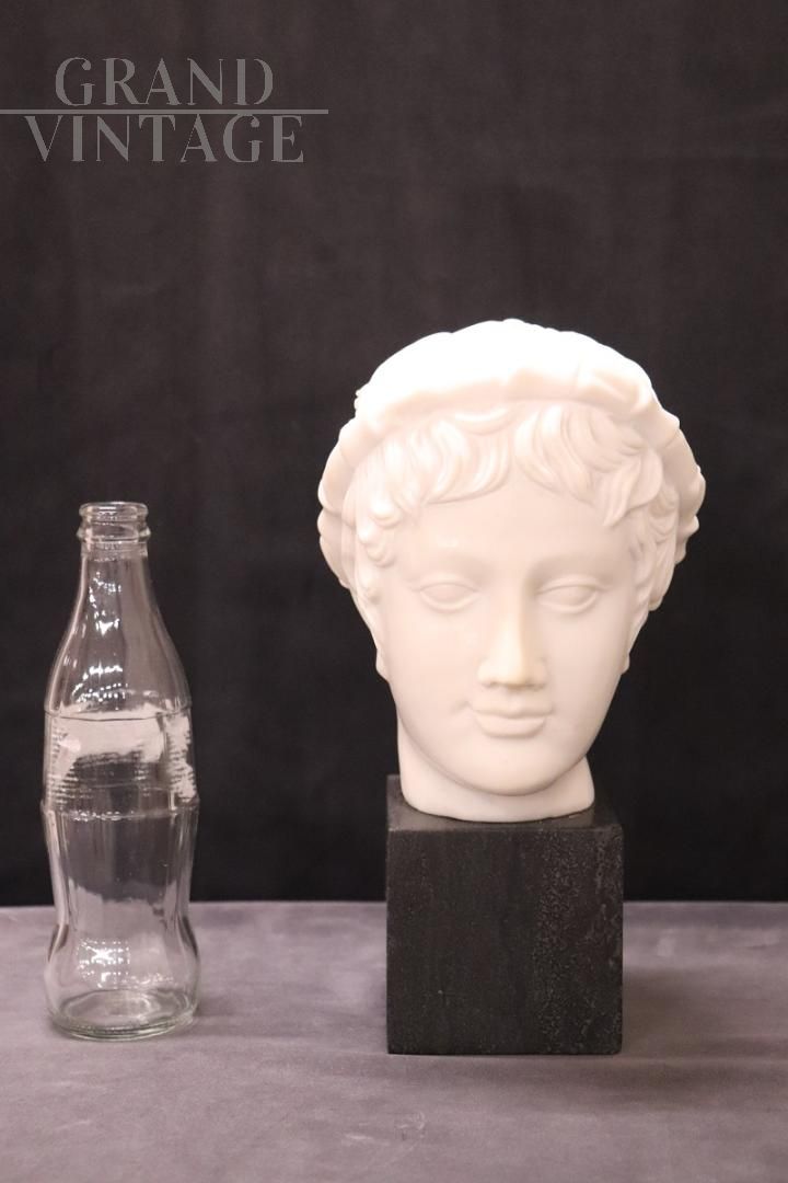 Testa di giovane Bacco, scultura classica in marmo bianco
