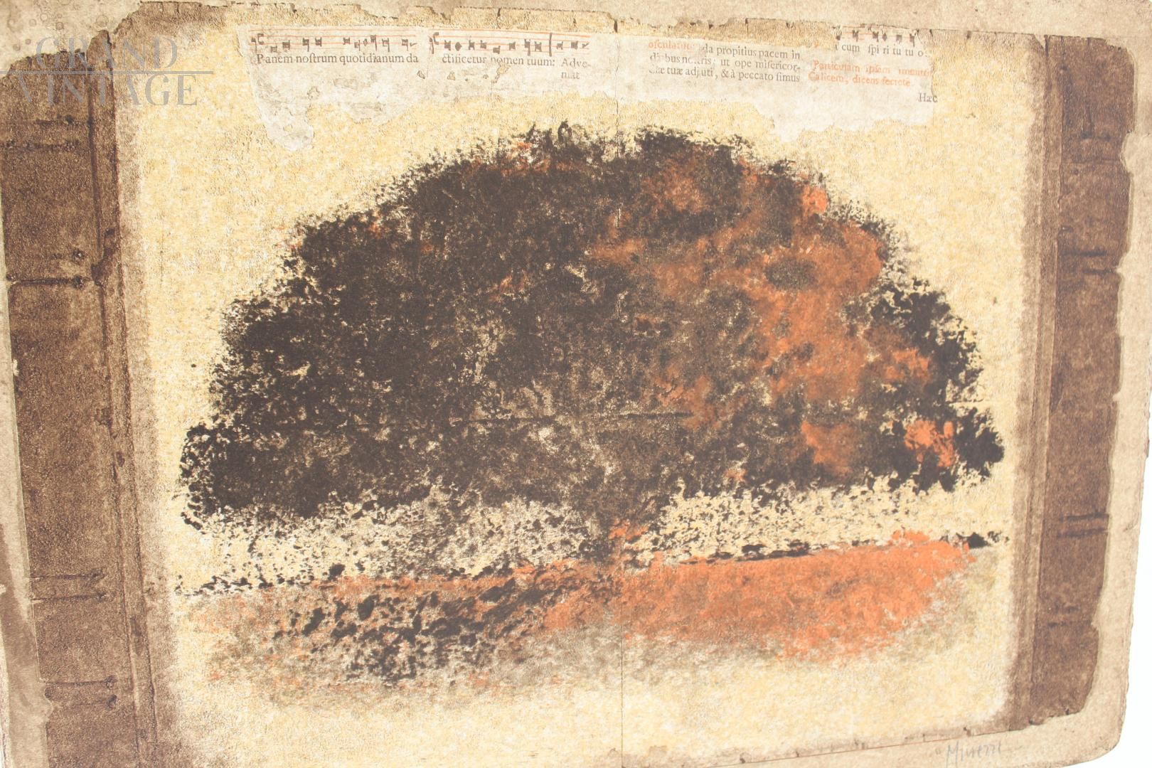 Trittico di dipinti di Antonio Minezzi firmati, olio su preparazione materica su cartone e pagina da Messale settecentesco.