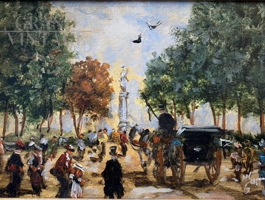 Pregevole dipinto dell'artista italiano Turri raffigurante uno scorcio di Parco Ducale a Parma. Un'opera dai colori luminosi realizzata ad olio su tavola e firmata a mano dell'artista in basso a destra. La tavola è racchiusa entro una pregevole cornice dorata che esalta ulteriormente il dipinto. Opera munita di certificato d'Autenticità.