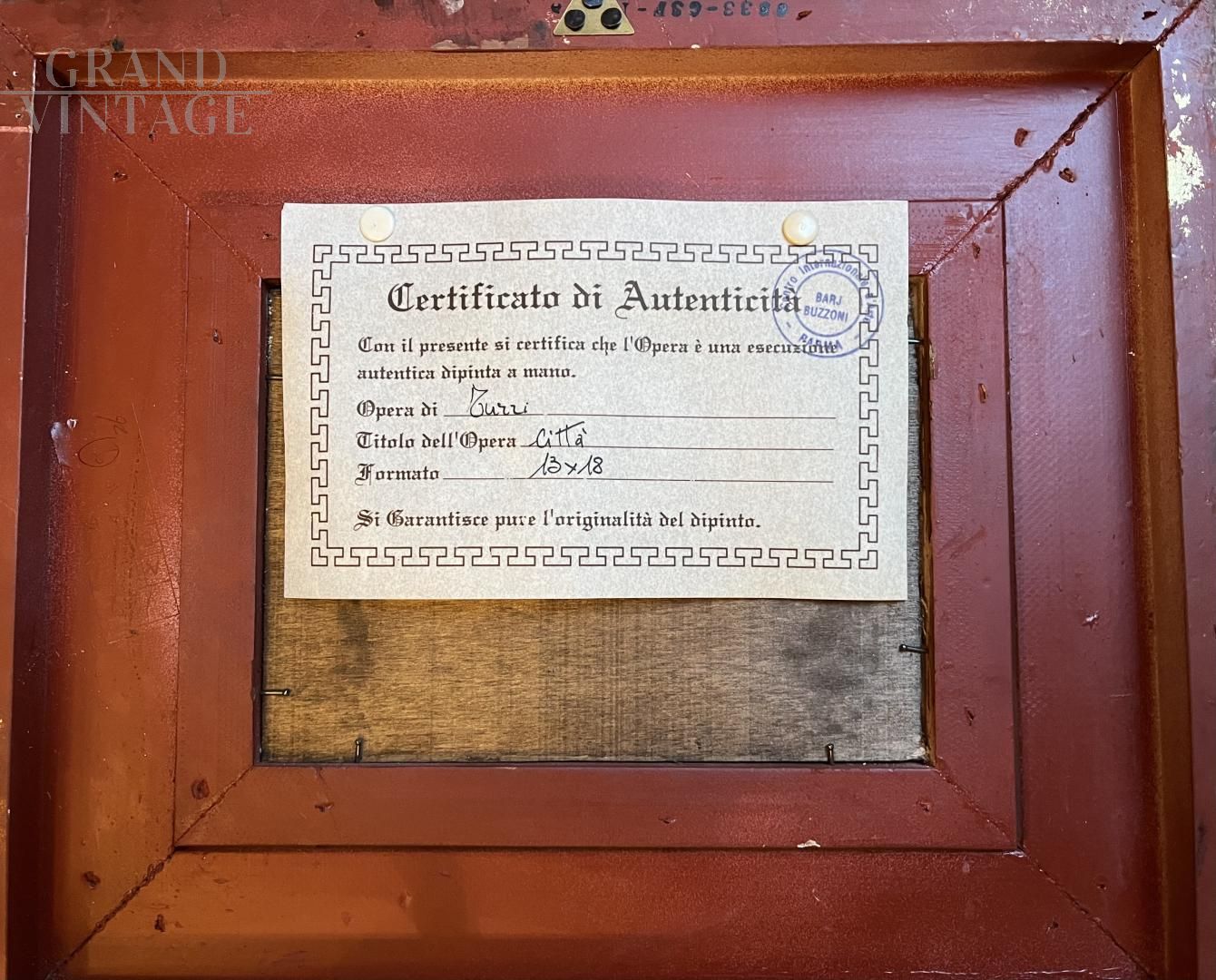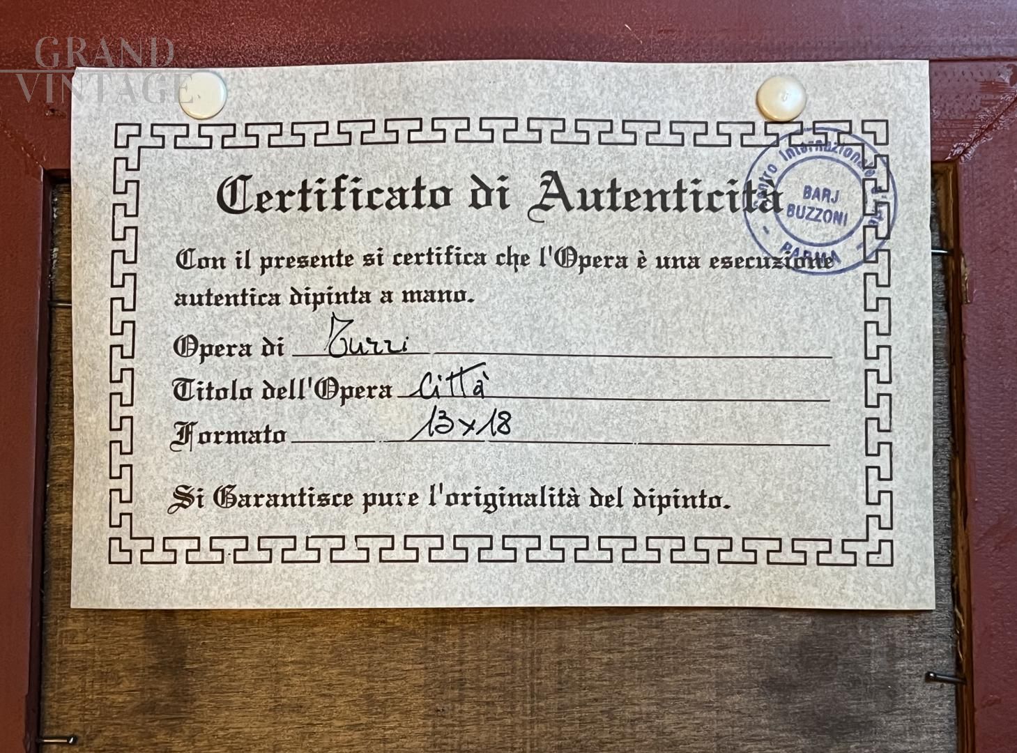 Turri - Dipinto di città italiana, olio su tavola del XX secolo