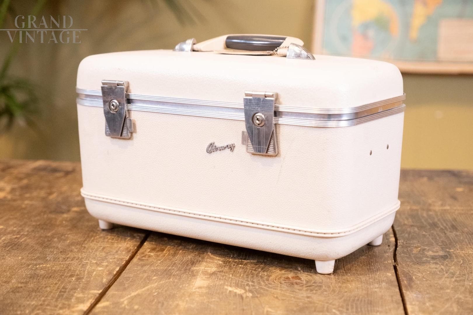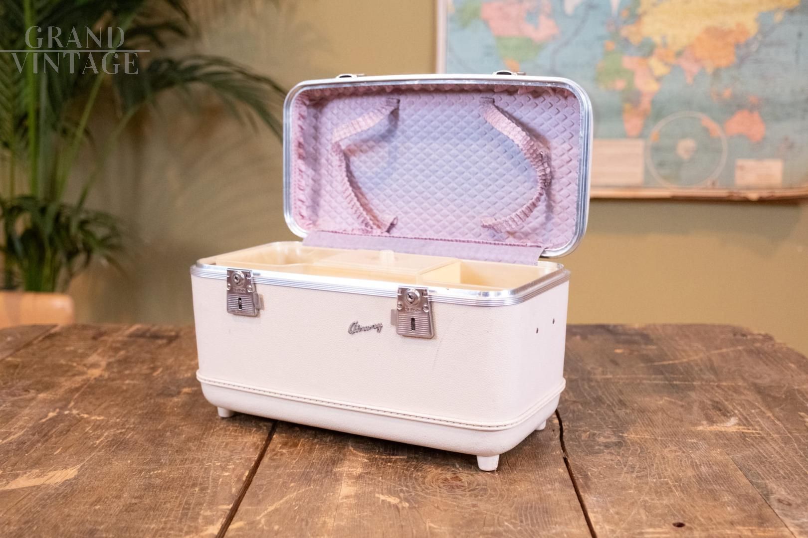 Valigetta beauty case vintage americana anni '60 di marca Airway in colore bianco, per un tocco di eleganza vintage, ideale per chi cerca un accessorio di qualità e stile retrò.