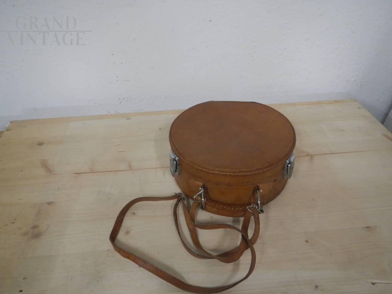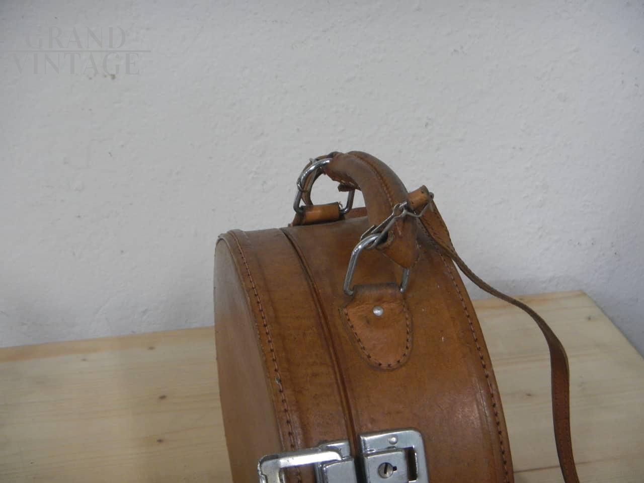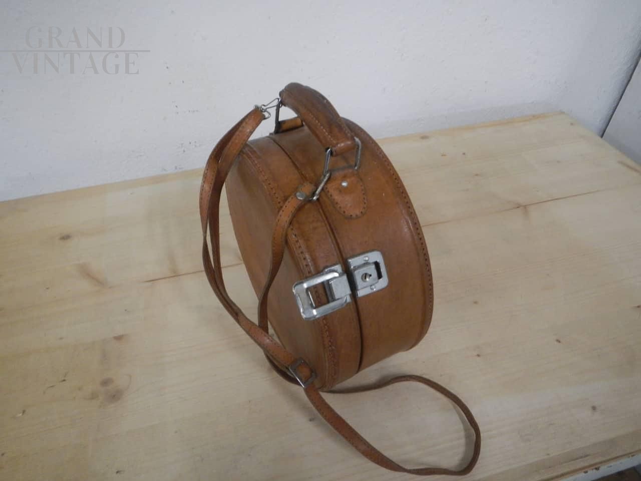 Valigetta borsetta rotonda vintage in pelle, anni '80