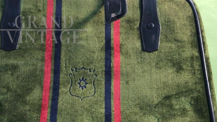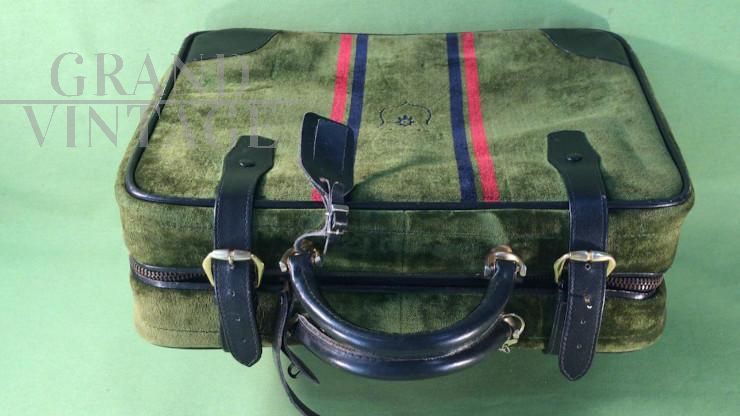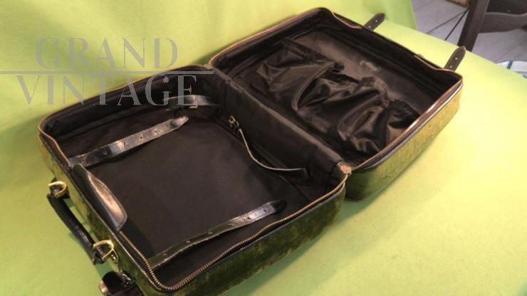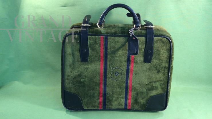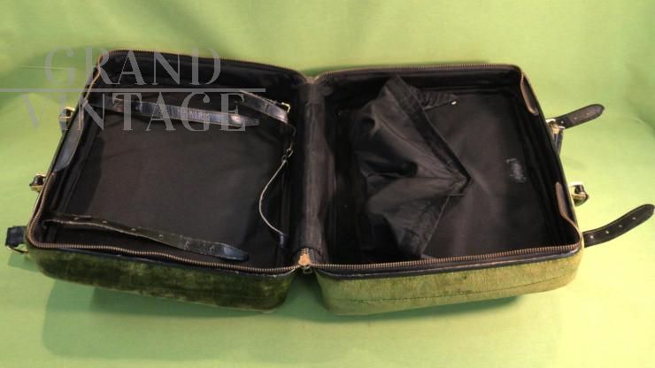 Preziosa e rara valigia vintage Roberta di Camerino, originale anni '60 in velluto verde e cuoio nero. In eccellenti condizioni sia esternamente che all'interno, considerati gli anni dalla produzione.
