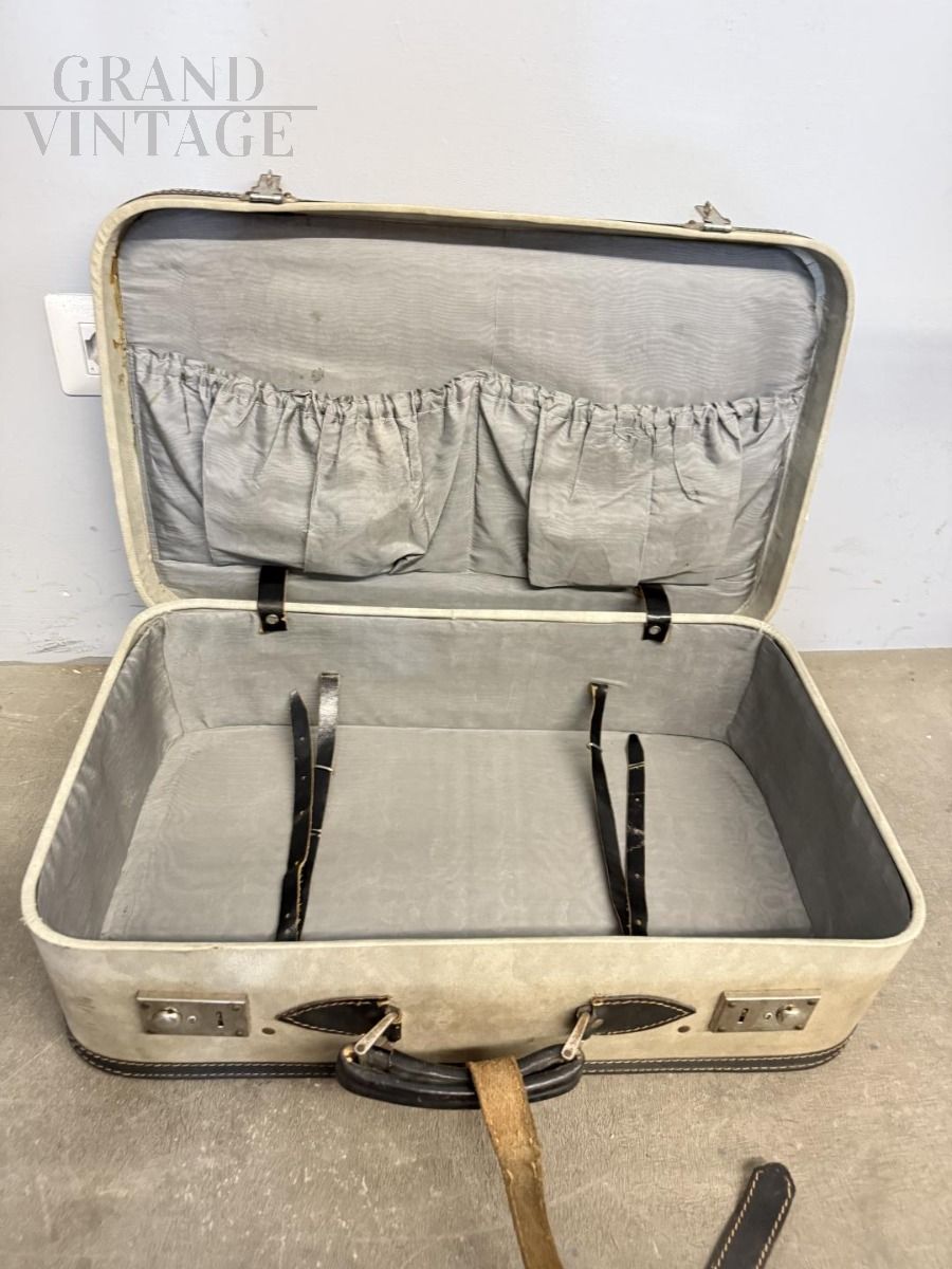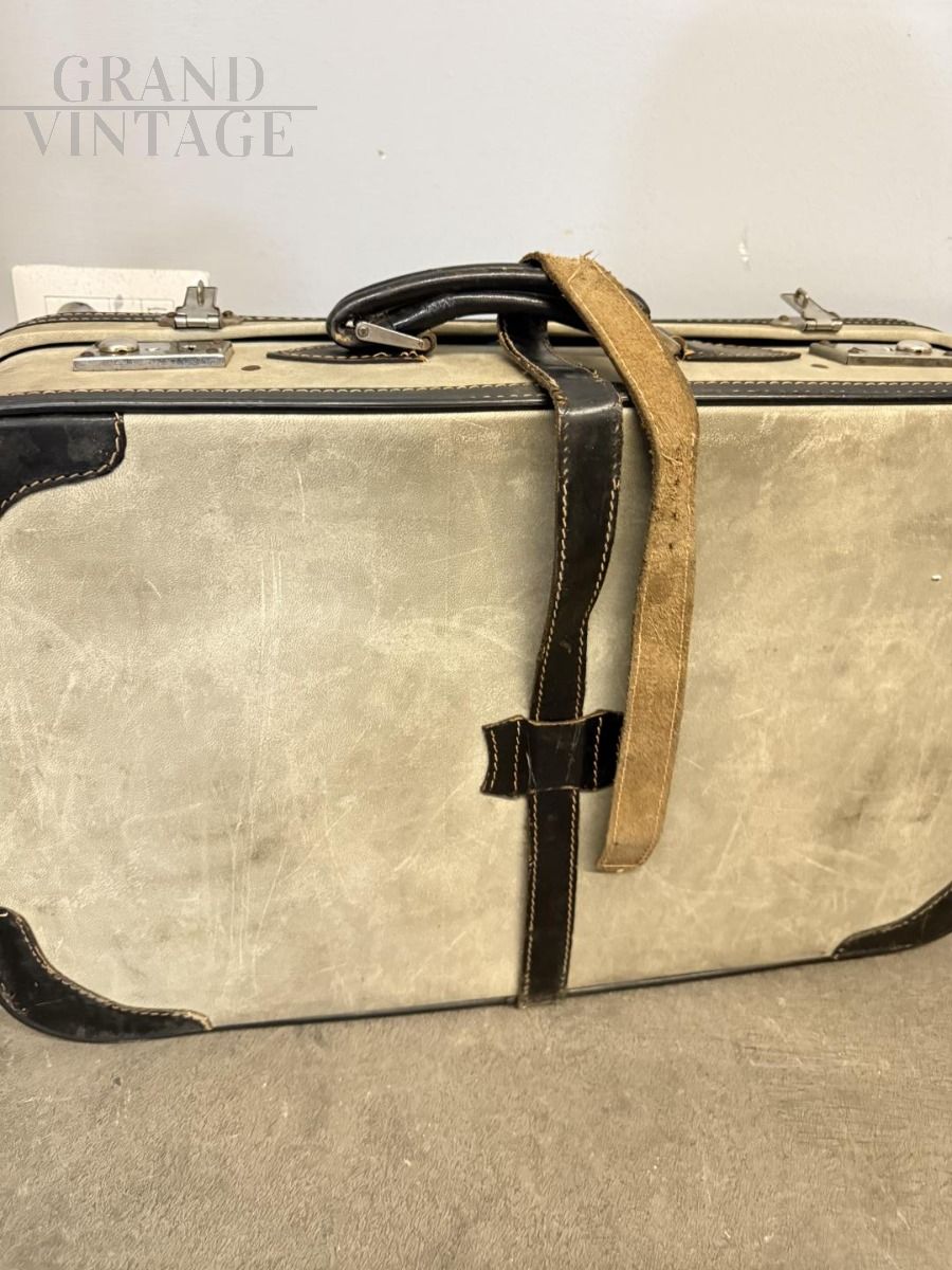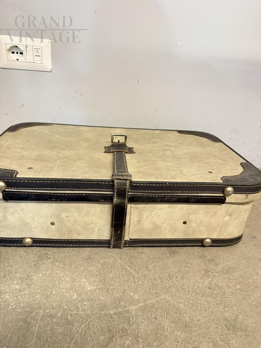 Valigia vintage in pelle avorio e cuoio nero, Italia anni '50