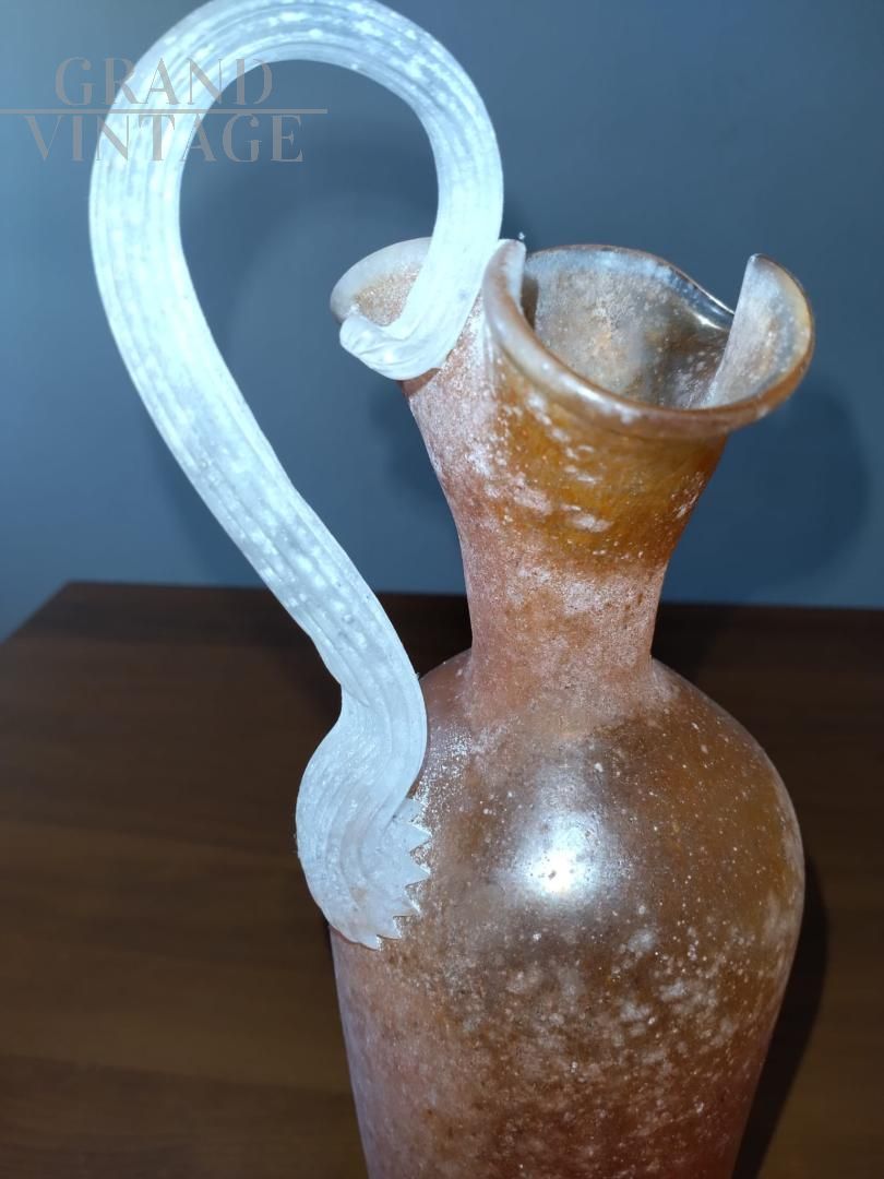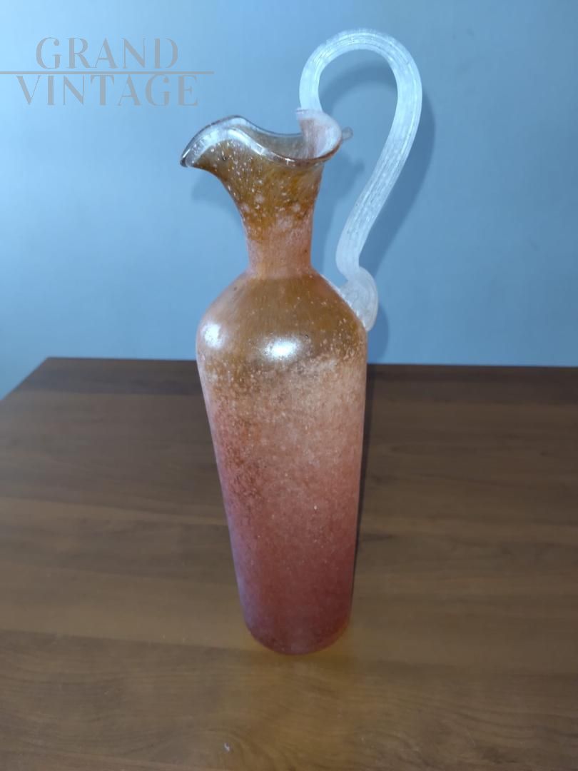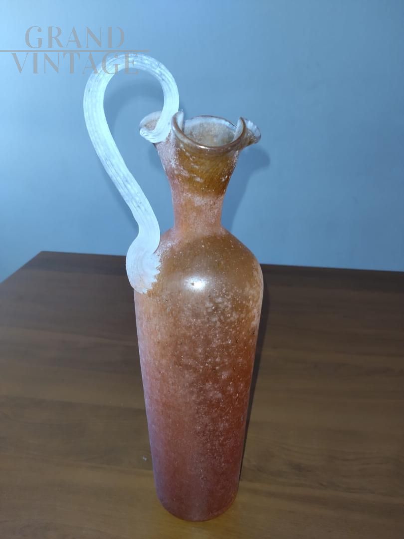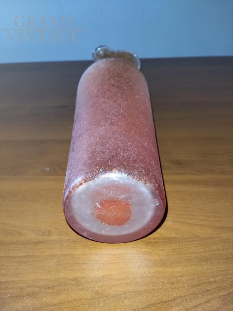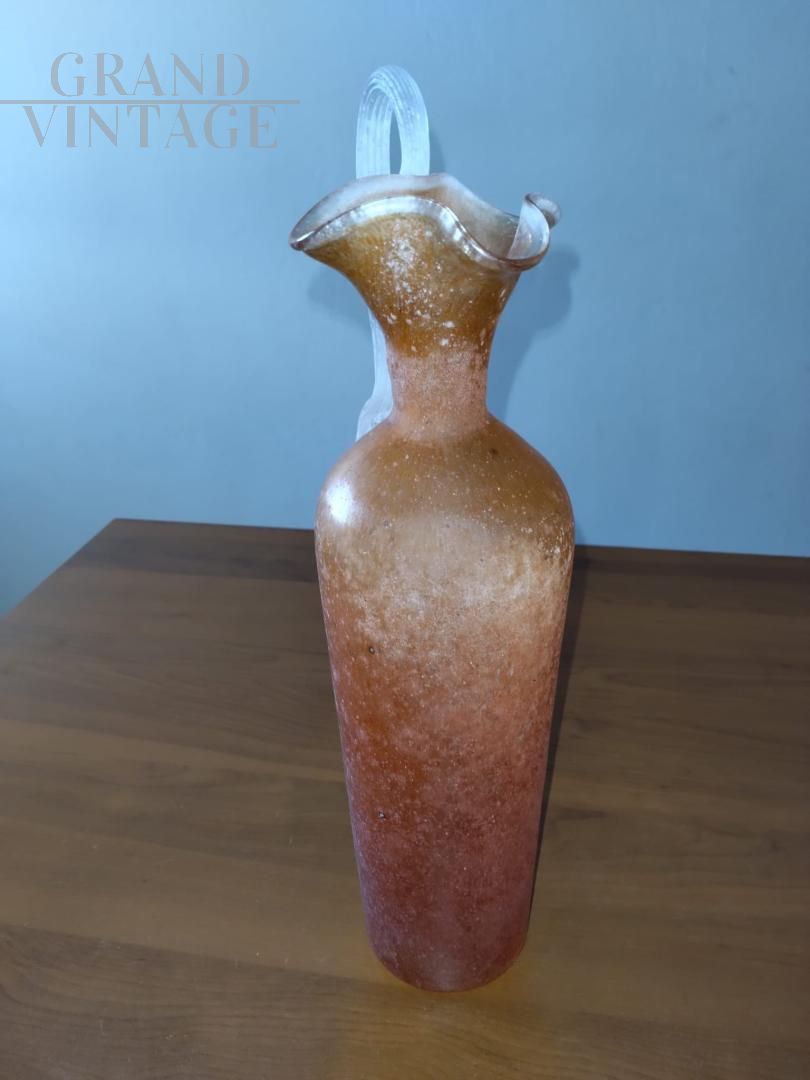 Bellissimo vaso a bottiglia in vetro antico artigianale sabbiato nei toni dell'arancione, degli anni '50. L'oggetto è in ottime condizioni di conservazione ed è ideale per arredare con il suo colore vivace, qualsiasi stanza della propria casa.