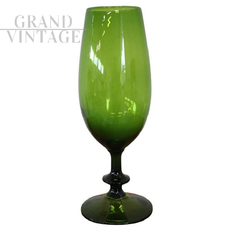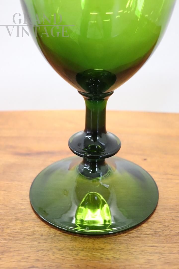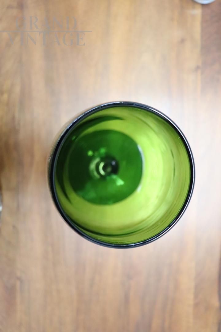 Vaso a coppa in vetro artistico di Empoli verde, anni '60