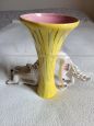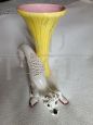 Scultura di cagnolino con vaso giallo realizzati in ceramica artistica alla fine degli anni '20 - inizio degli anni '30. Piccole imperfezioni dovute al tempo.
