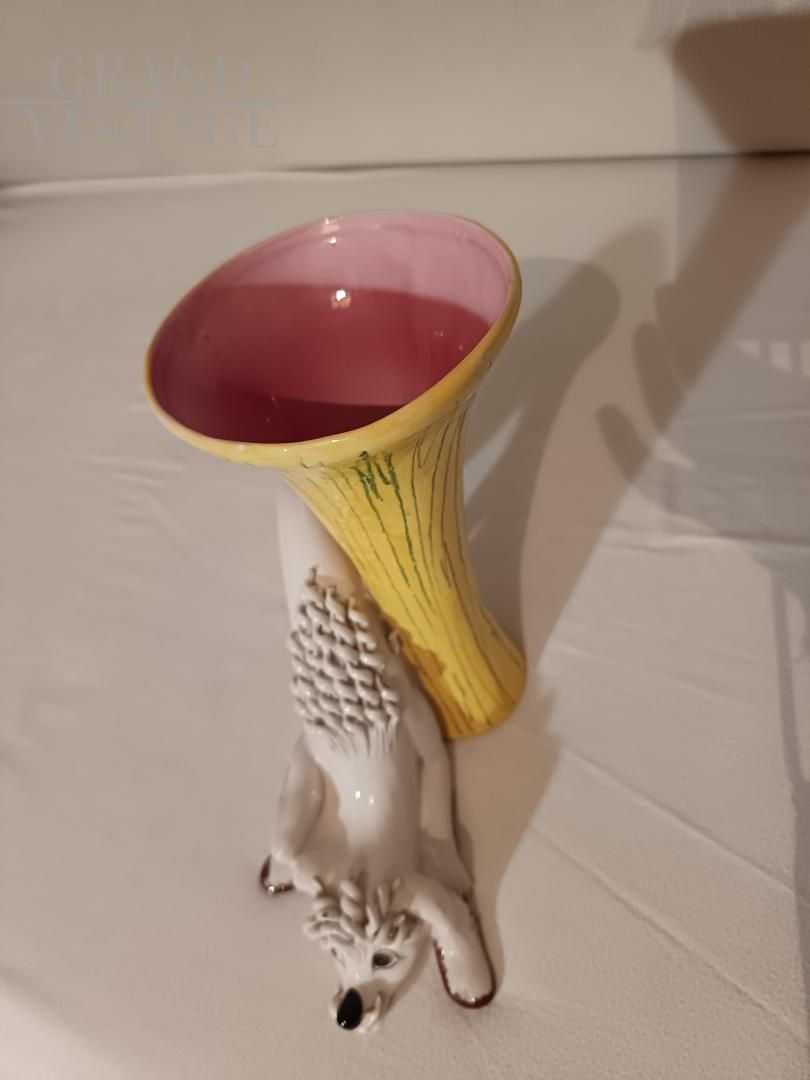 Vaso con cagnolino in ceramica anni '30