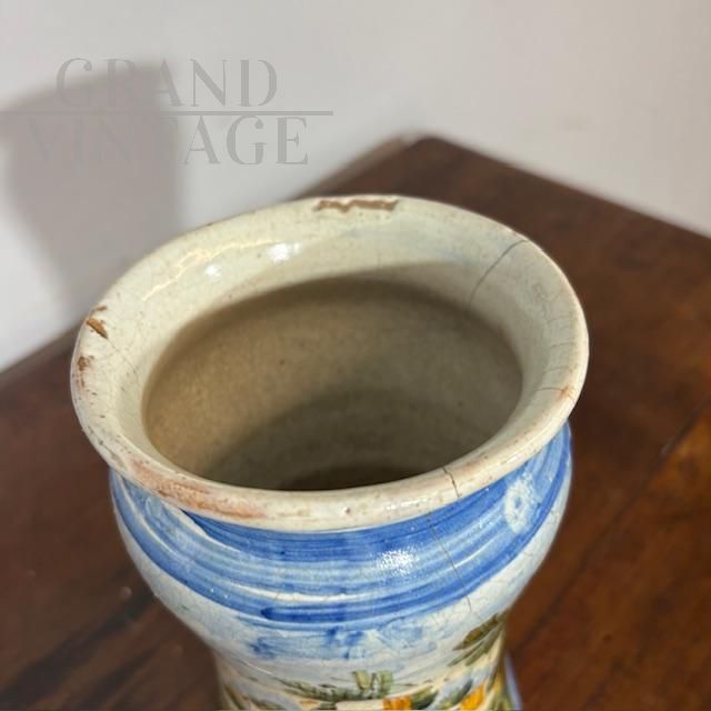 Vaso da farmacia antico in ceramica Albarello, Napoli XVIII secolo