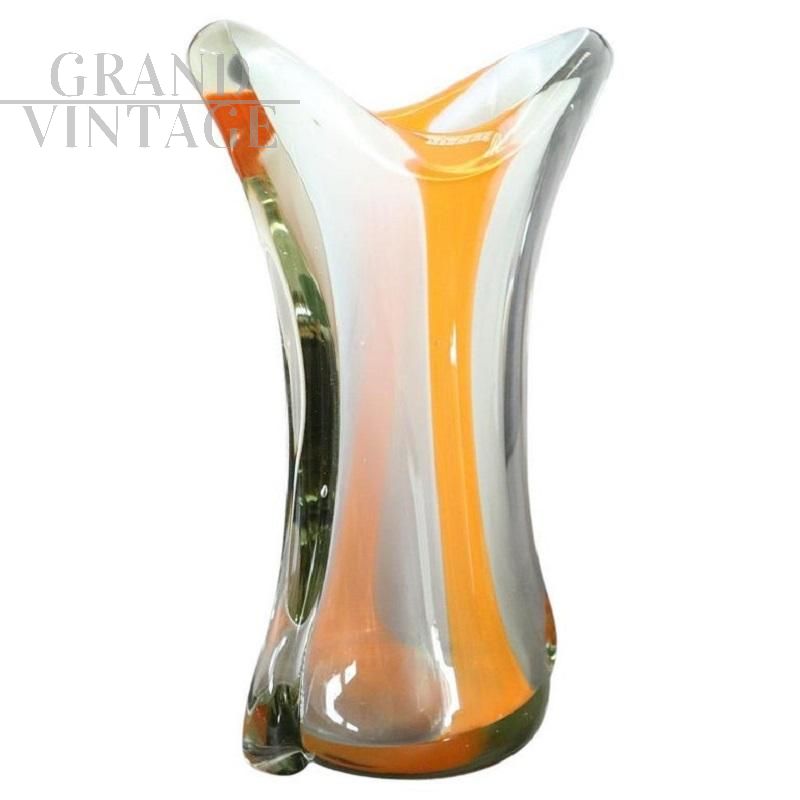 Vaso in vetro artistico di Murano anni '60 color arancione