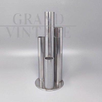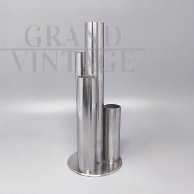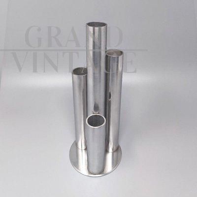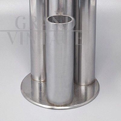 Vaso design Space Age con 4 tubi asimmetrici di diverse altezze in acciaio inossidabile, Italia anni '70. Questo vaso è in ottime condizioni.