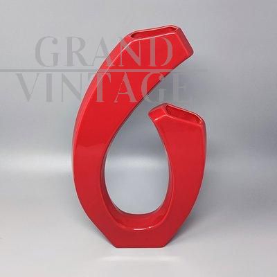Vaso Space Age design di Pietro Arosio in ceramica rossa, Italia anni '70
