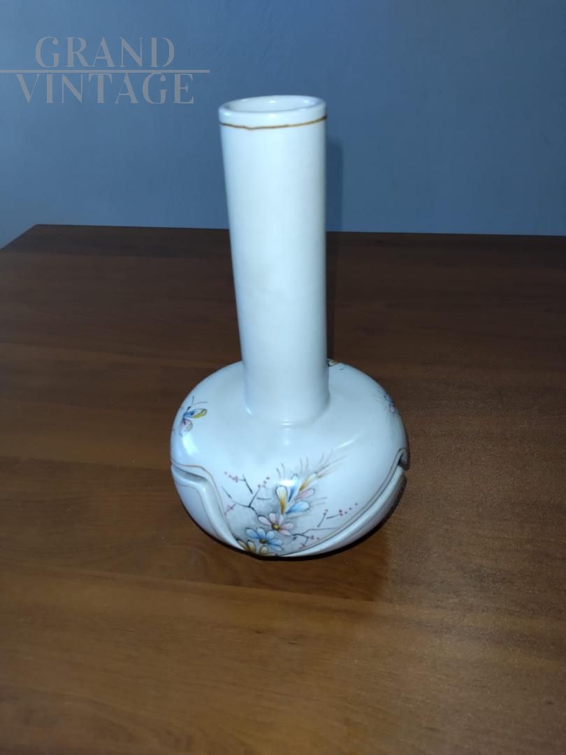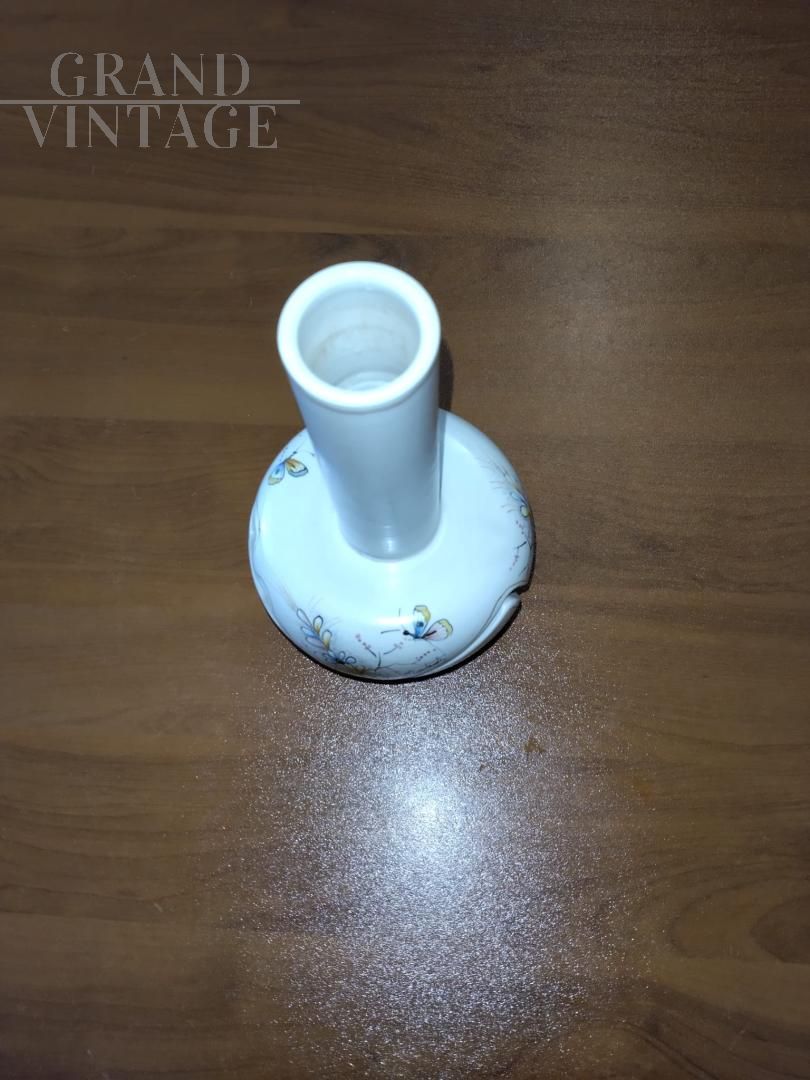 Piccolo ma bellissimo vaso vintage in ceramica policroma dipinto a mano firmato Deruta Mordenti, autografato dall'artista. La decorazione consiste in fiori e farfalle. Oggetto di gusto gradevole da inserire in qualsiasi ambiente della propria casa.